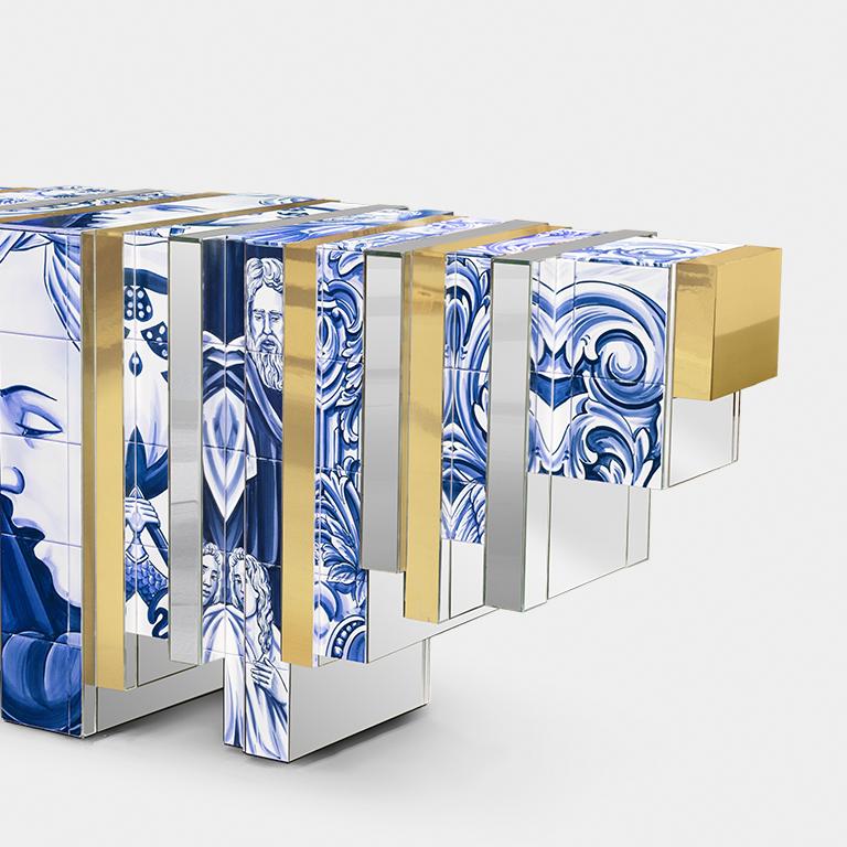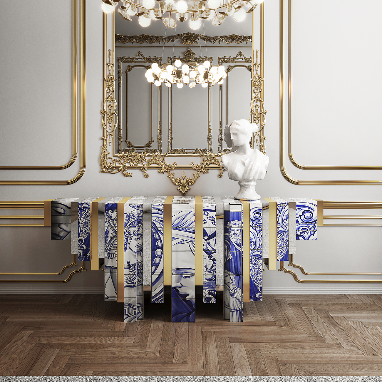 This luxurious Italian foyer table blends modern and classical flavors. Hand drawn patterns add an artistic touch to the foyer table, making it feel like a delicate piece of art.