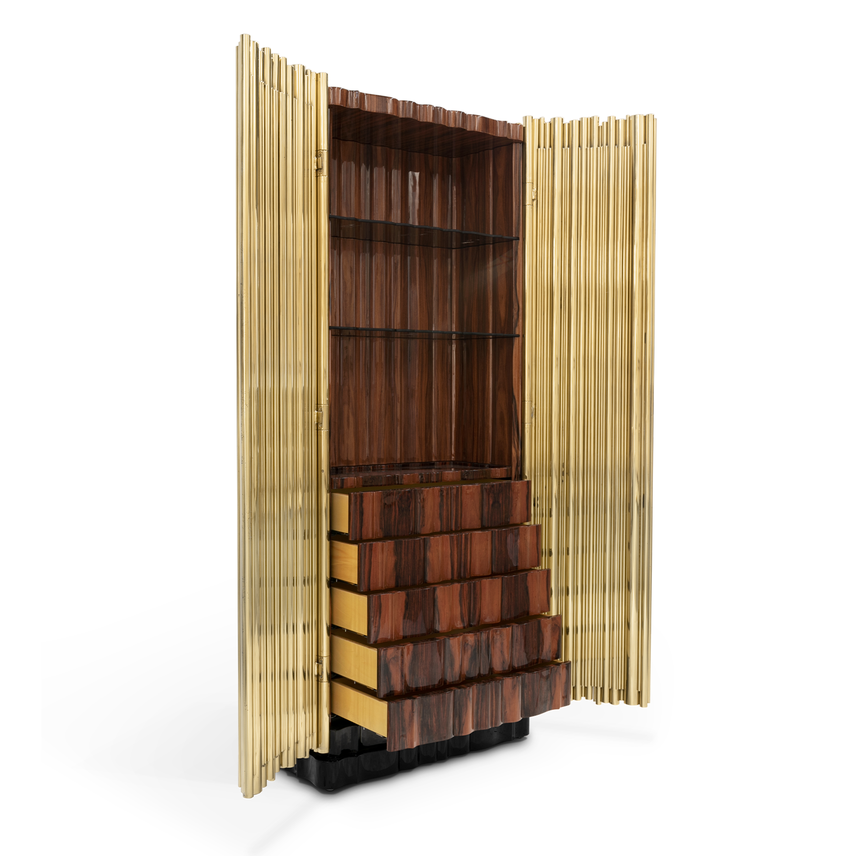 This unique storage cabinet adopts a vertical arrangement design, with sliding cabinet doors that are easy to open and close. The interior is made of wooden structure, and the multi-layer grid layout is reasonable, making it easy to classify and store. The overall design cleverly integrates natural elements with practical functions.