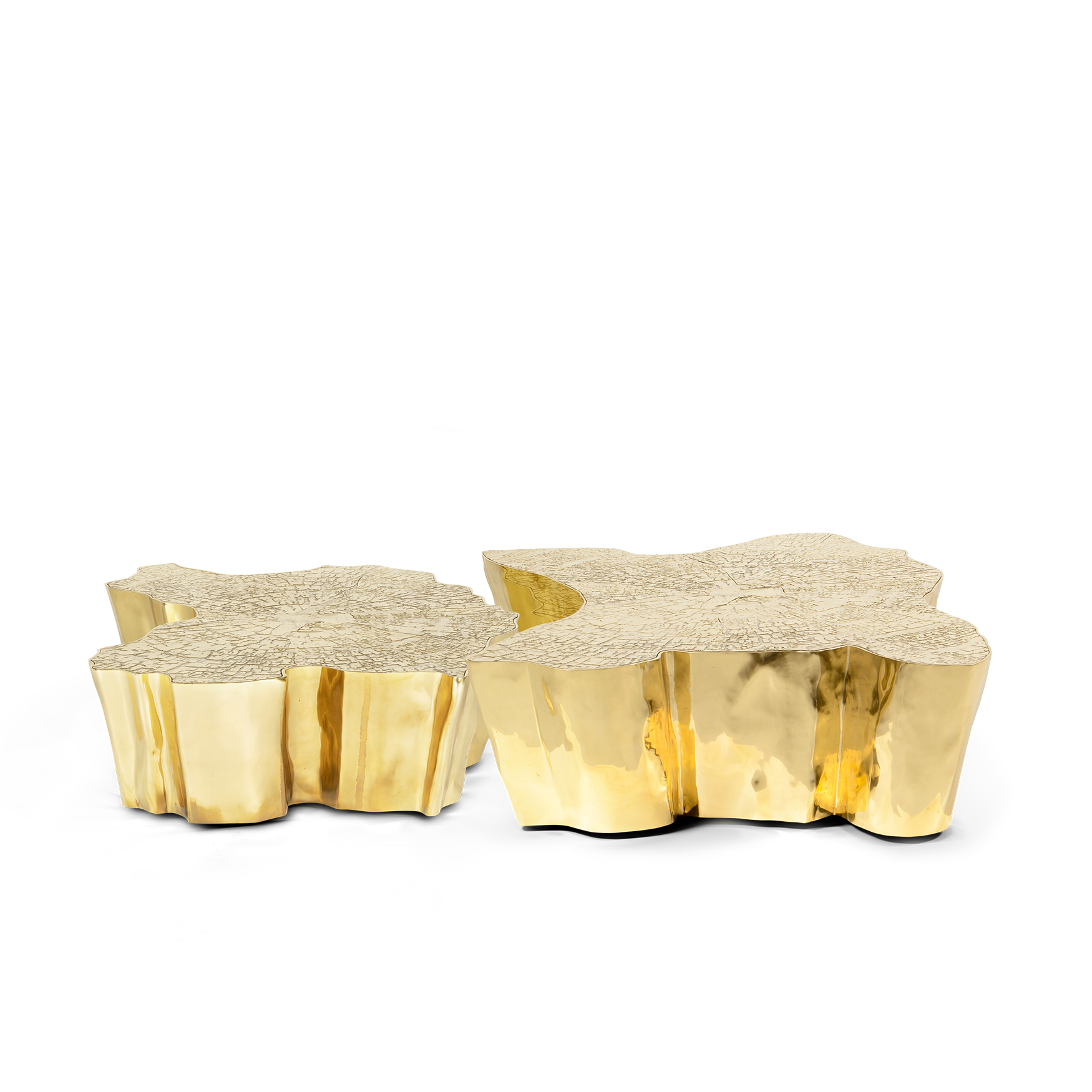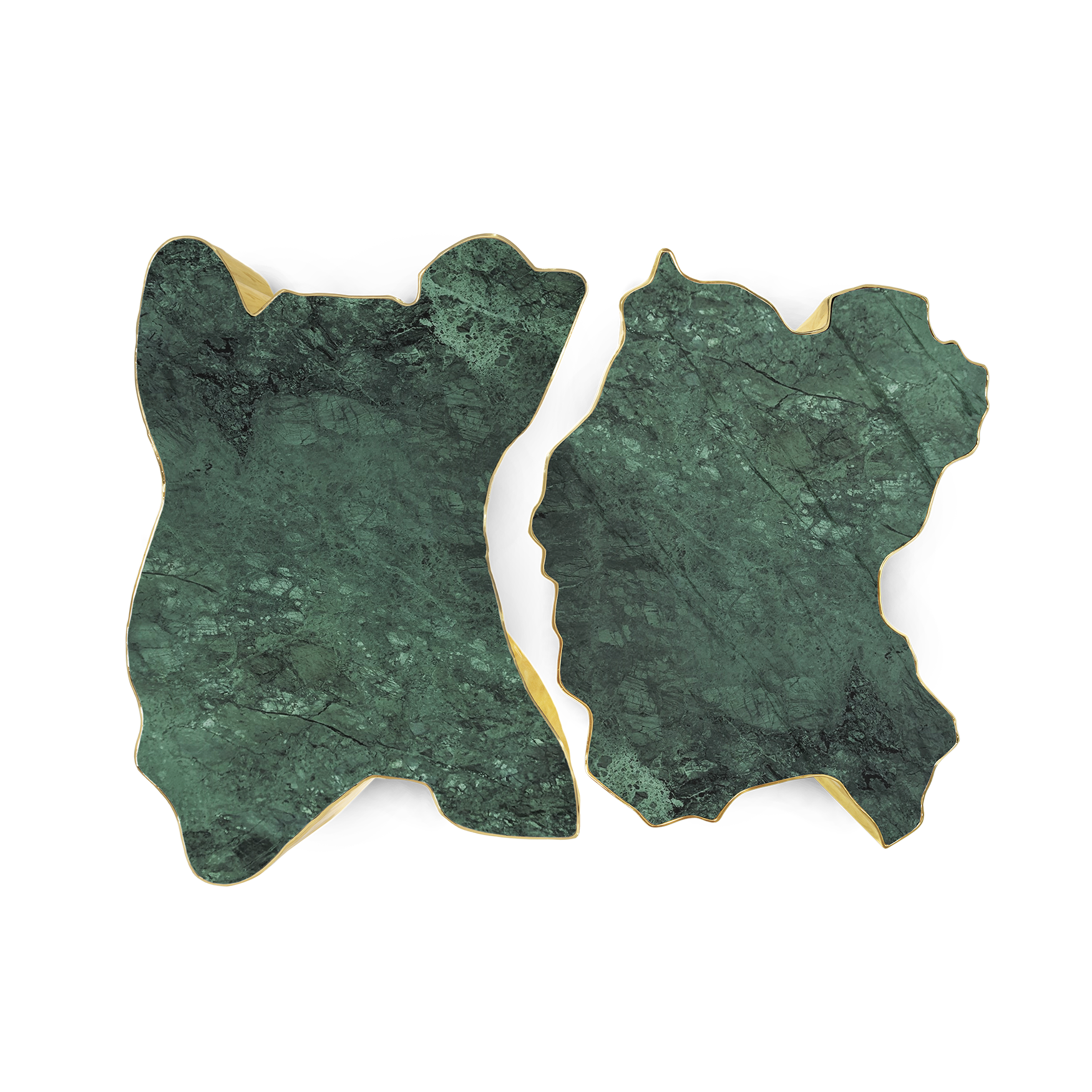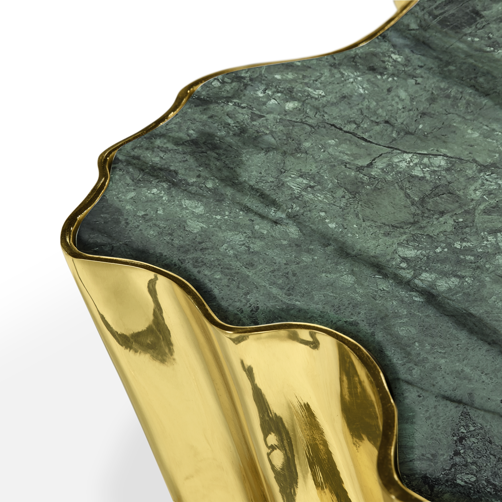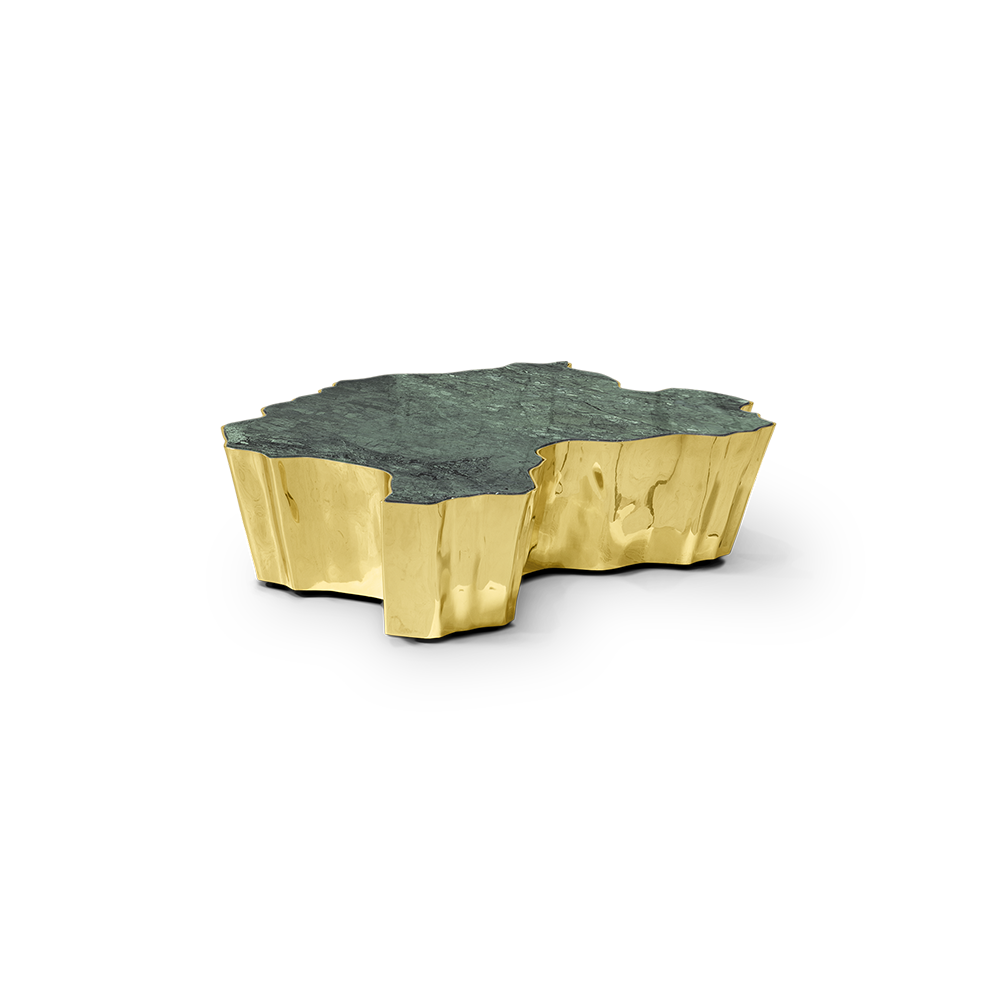 This high-end modern metal coffee table perfectly blends stainless steel with green marble, taking inspiration from natural tree trunks to create irregular sculptural shapes. It is not only a practical furniture for the living room, but also the artistic focus of the space, showcasing your luxurious taste and unique aesthetic.