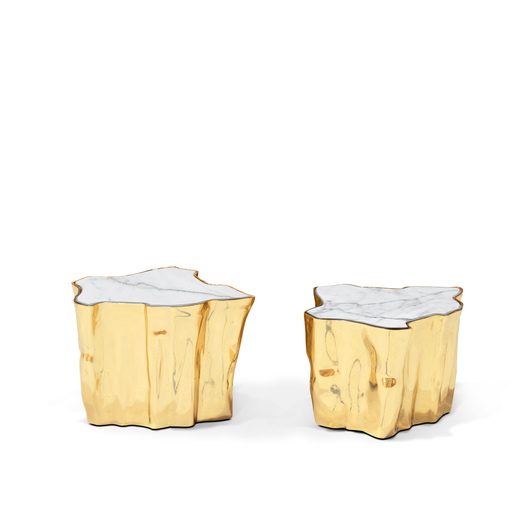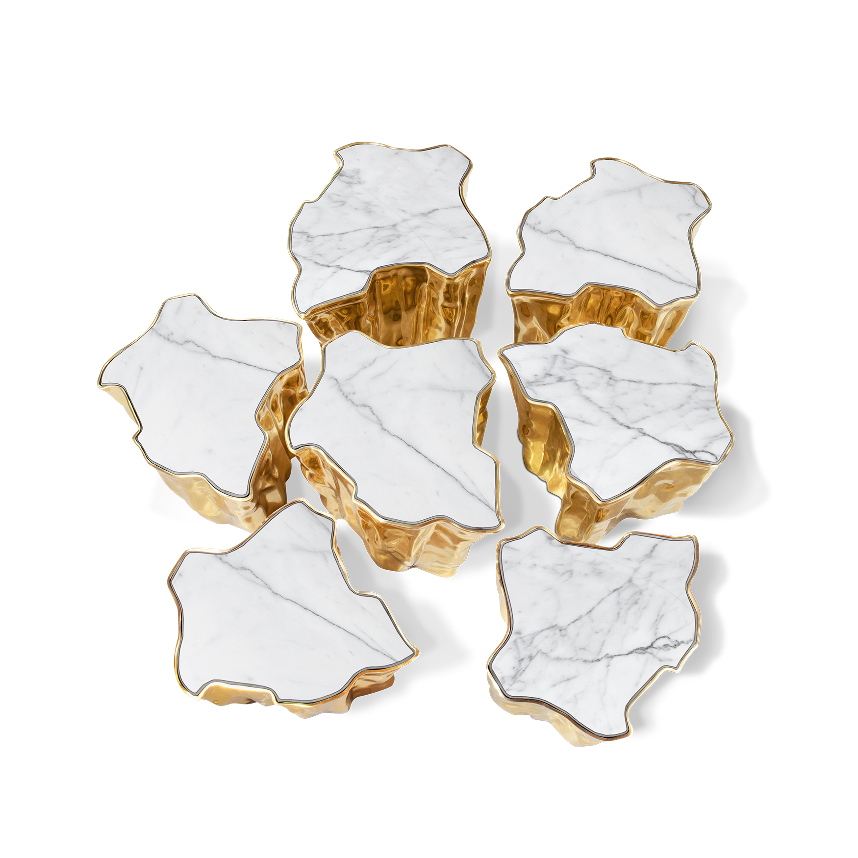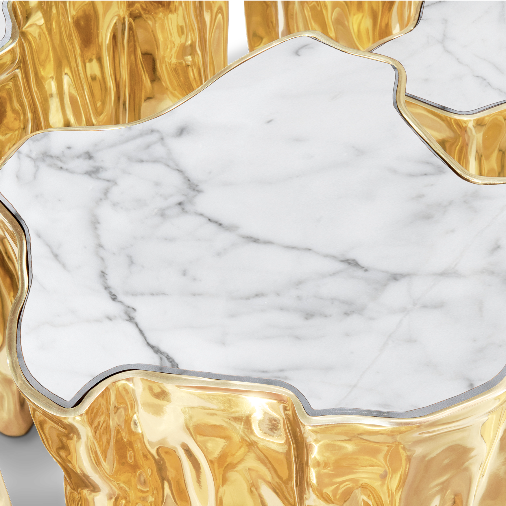 This high-end modern metal coffee table perfectly blends stainless steel with green marble, taking inspiration from natural tree trunks to create irregular sculptural shapes. It is not only a practical furniture for the living room, but also the artistic focus of the space, showcasing your luxurious taste and unique aesthetic.