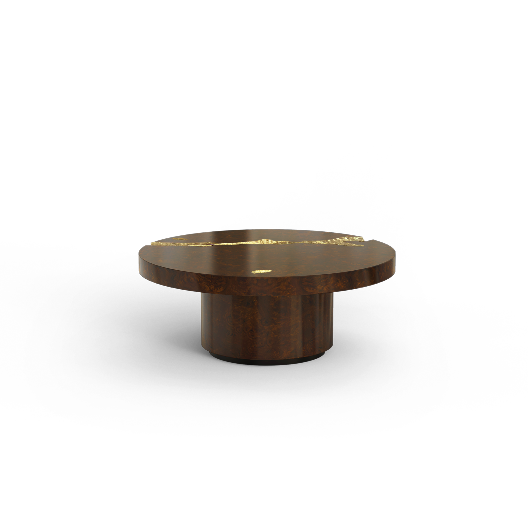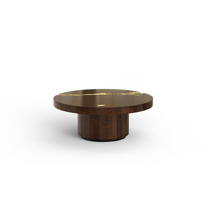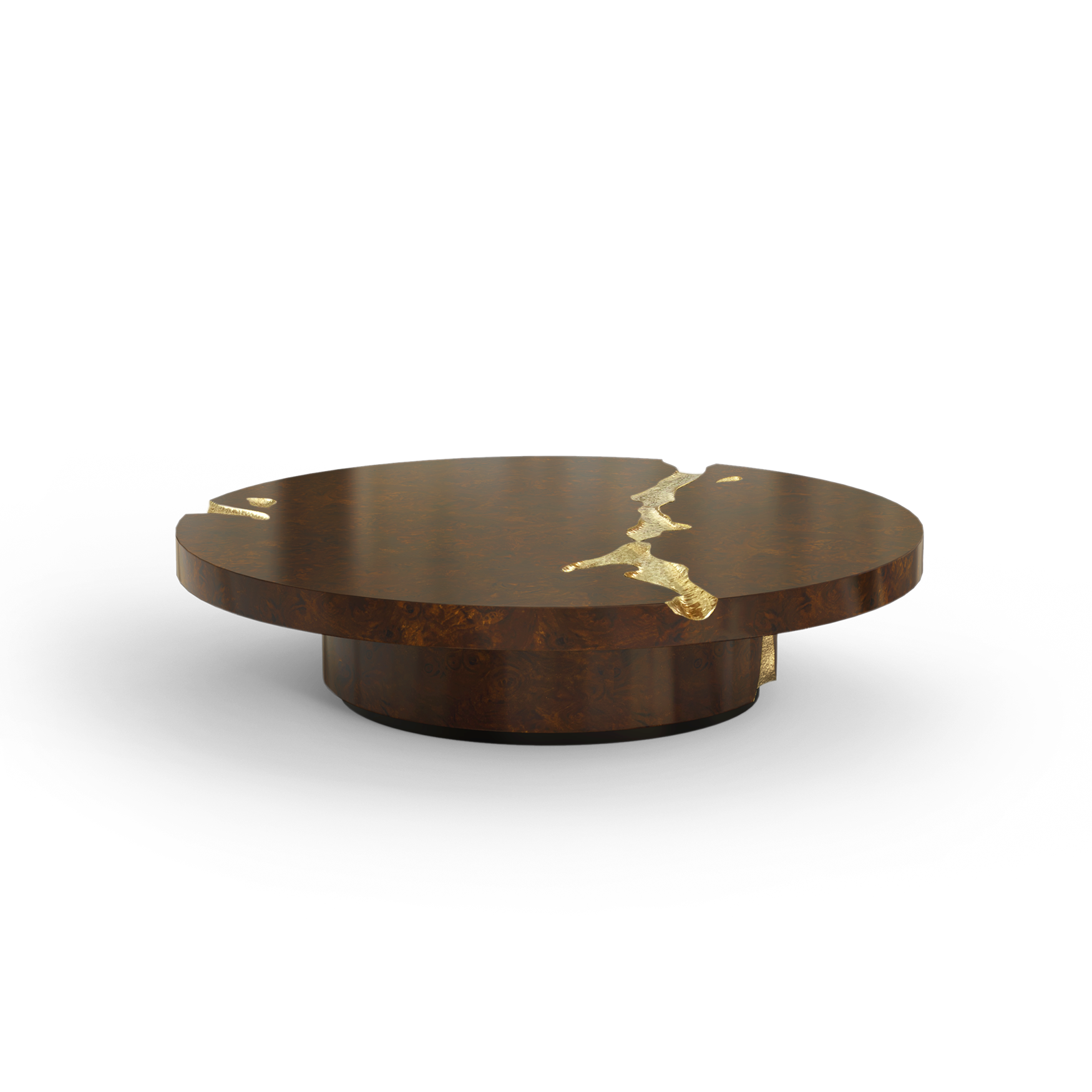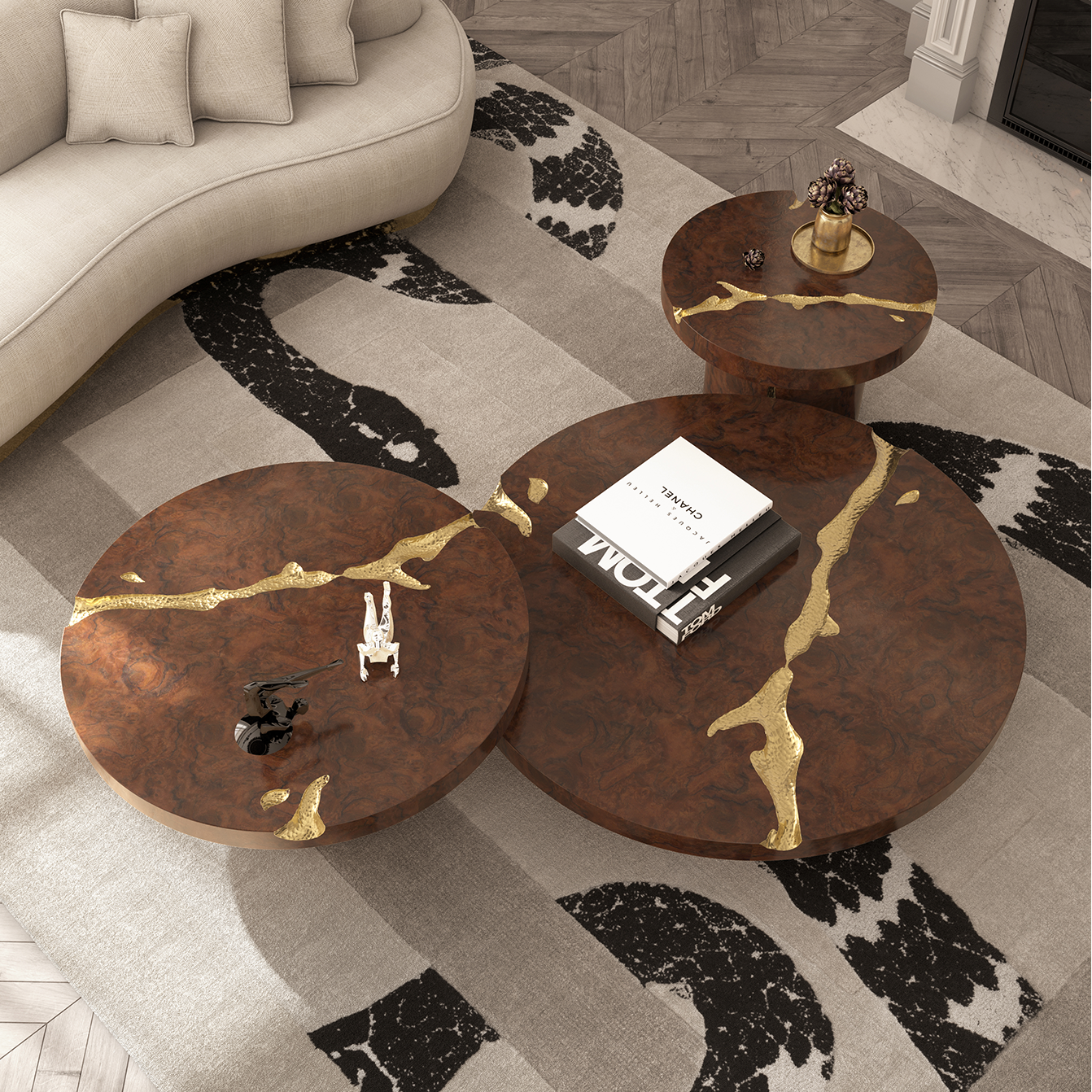 This high-end luxury brass cracked coffee table combines modern design with natural inspiration. The unique cracked texture of the brass tabletop is as exquisite as an artwork, complementing the stable texture of the solid wood base.