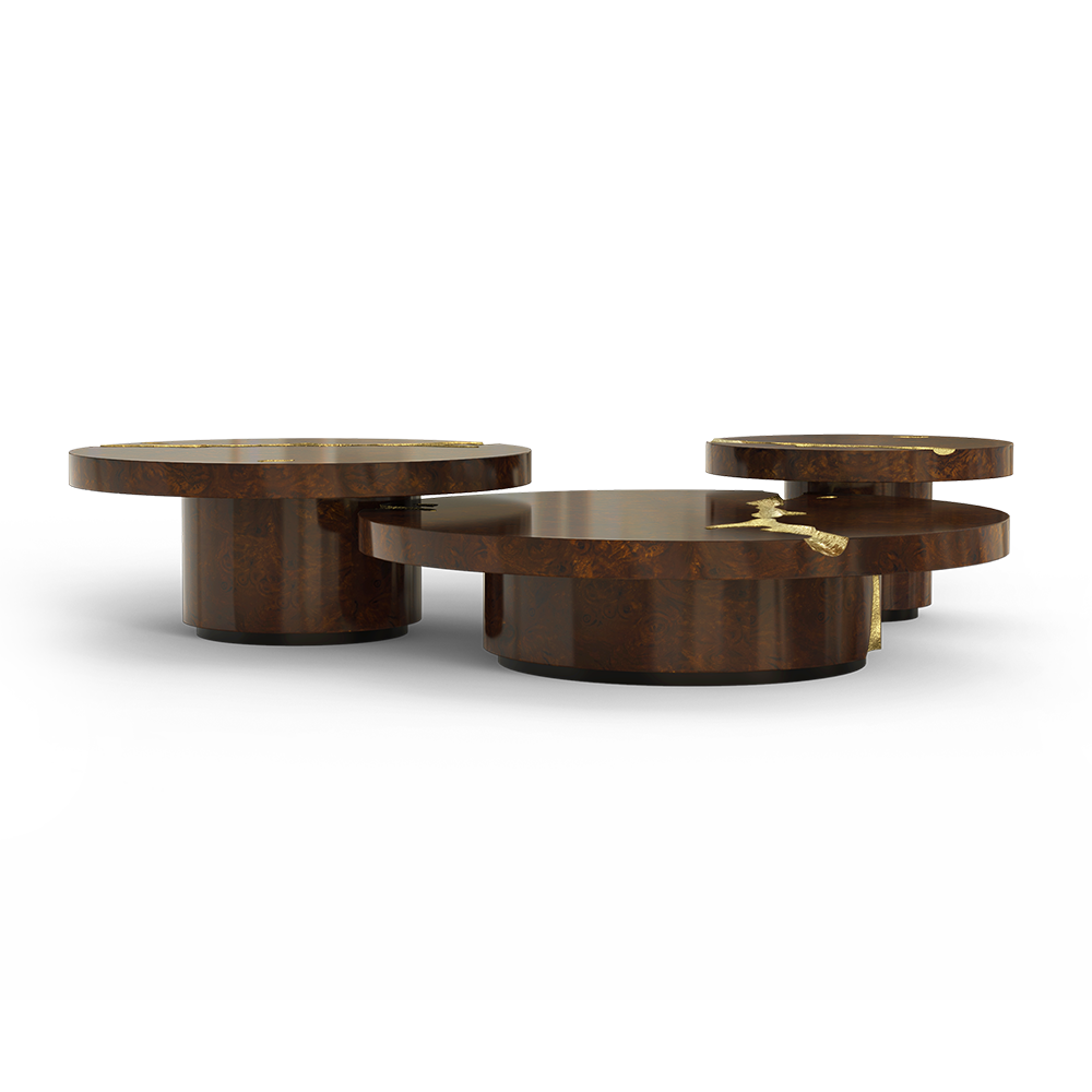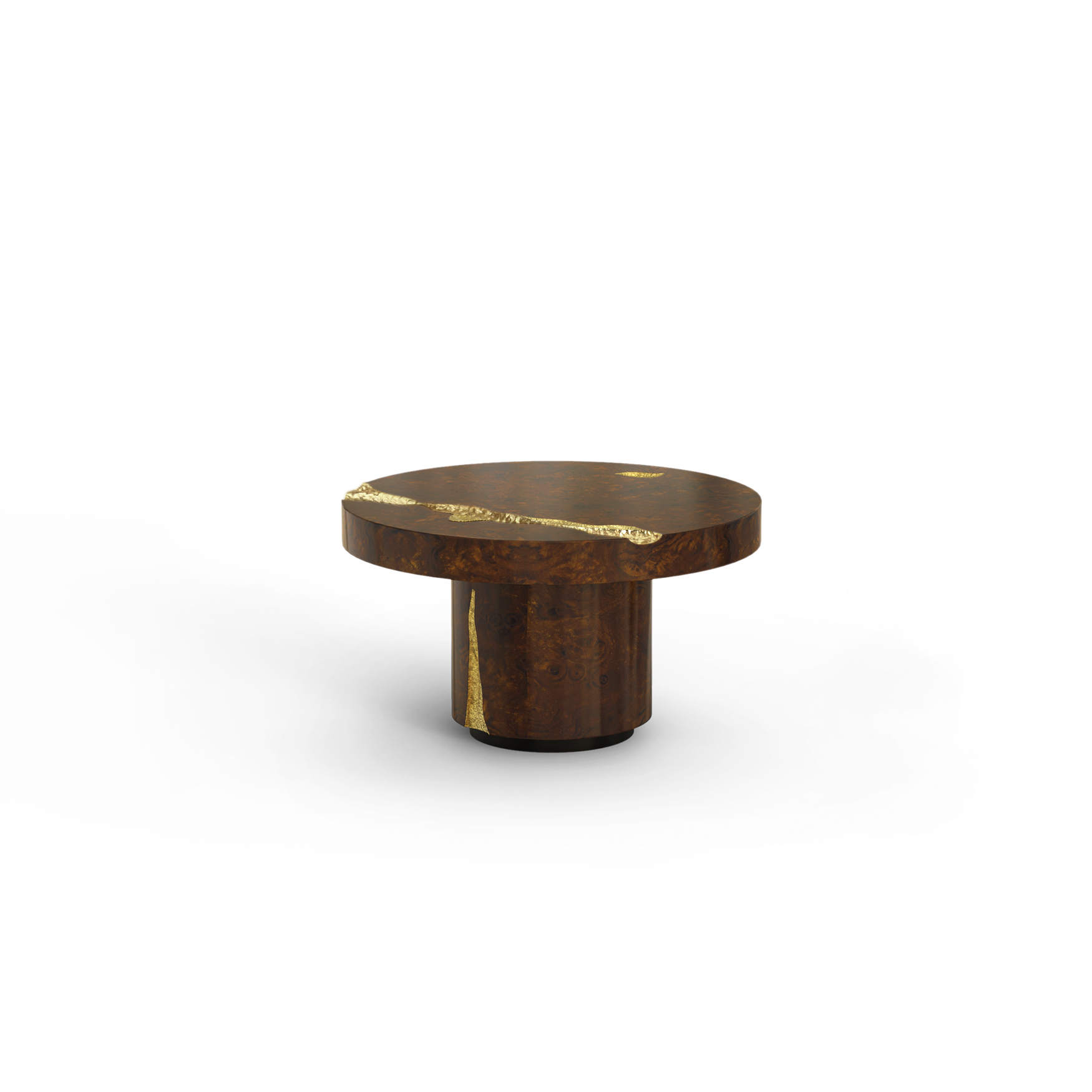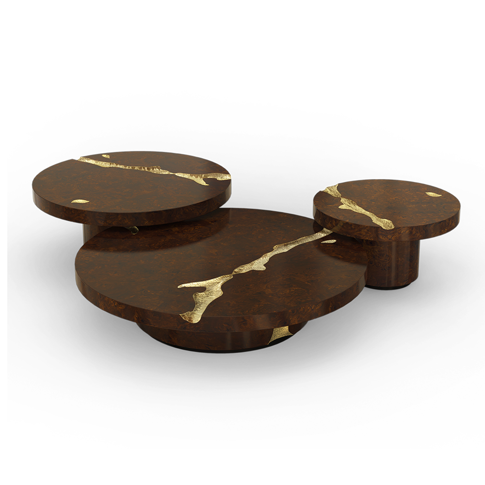 This high-end luxury brass cracked coffee table combines modern design with natural inspiration. The unique cracked texture of the brass tabletop is as exquisite as an artwork, complementing the stable texture of the solid wood base.