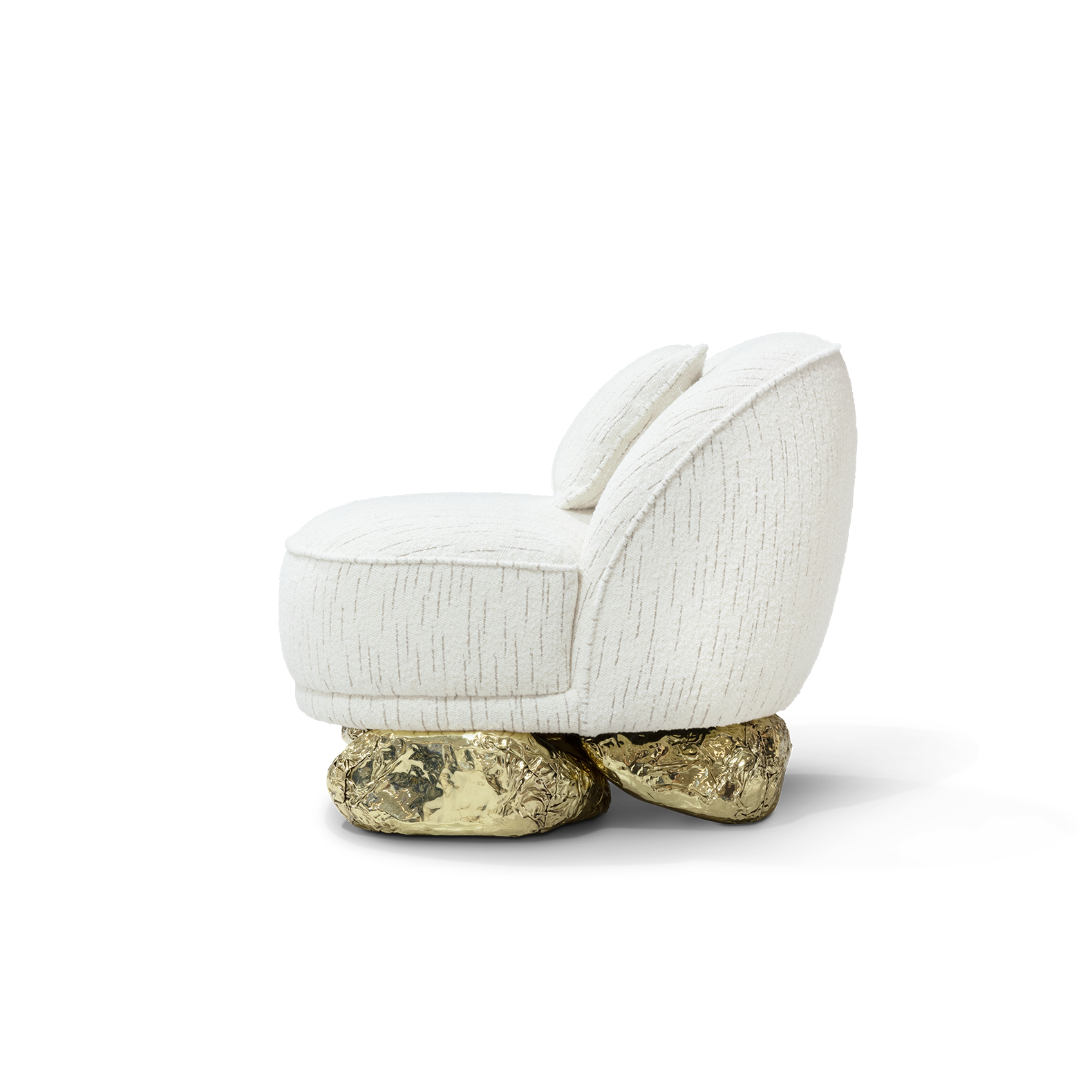 This high-end modern single sofa is designed in Italy, blending luxury and art. Using high-quality fabric with a soft touch, paired with a unique brass base, showcasing high-end taste. Suspended base design enhances the sense of space and showcases modern aesthetics. It is not only a comfortable seat, but also an artistic decoration in the living room, leading the new trend of home decor.