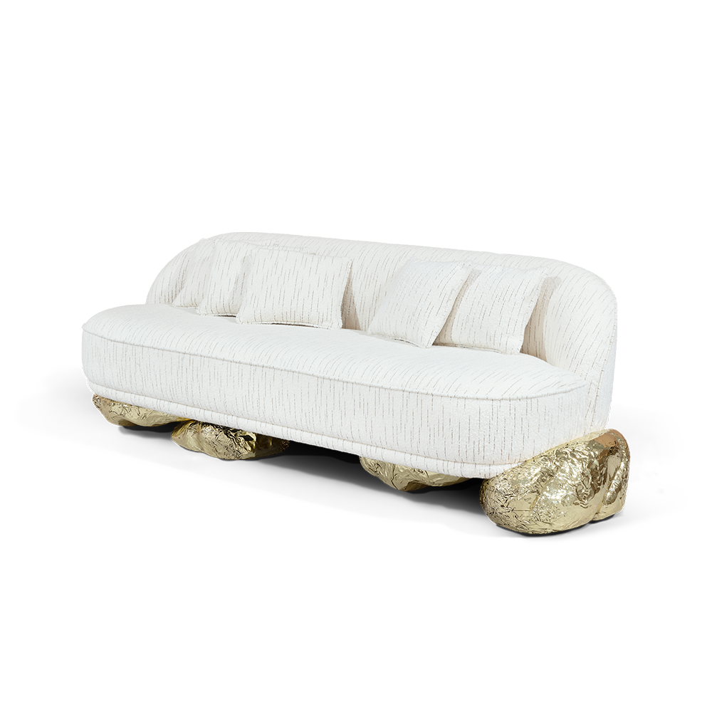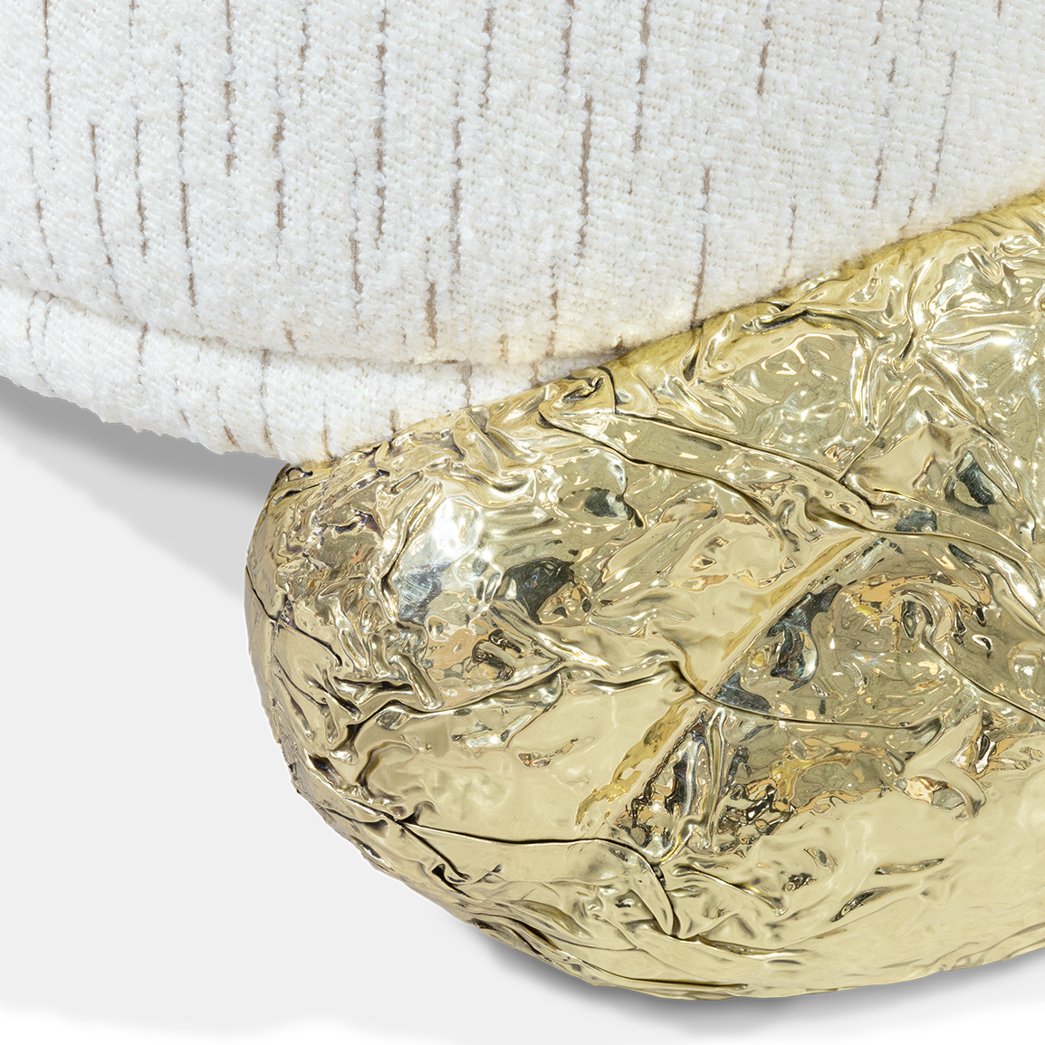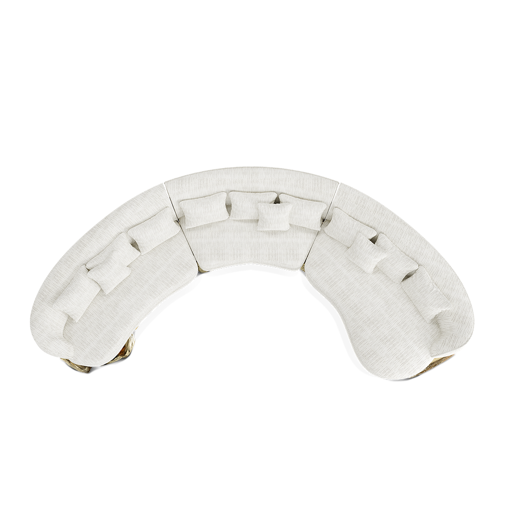 This Italian designed curved sofa is made of high-quality fabrics, with a soft and comfortable touch. Paired with an exquisite brass base, it exudes a luxurious texture. Modular design allows for flexible and versatile spatial layout. The beautiful curved lines not only bring visual enjoyment, but also allow every seated person to feel the perfect balance of comfort and inclusiveness.