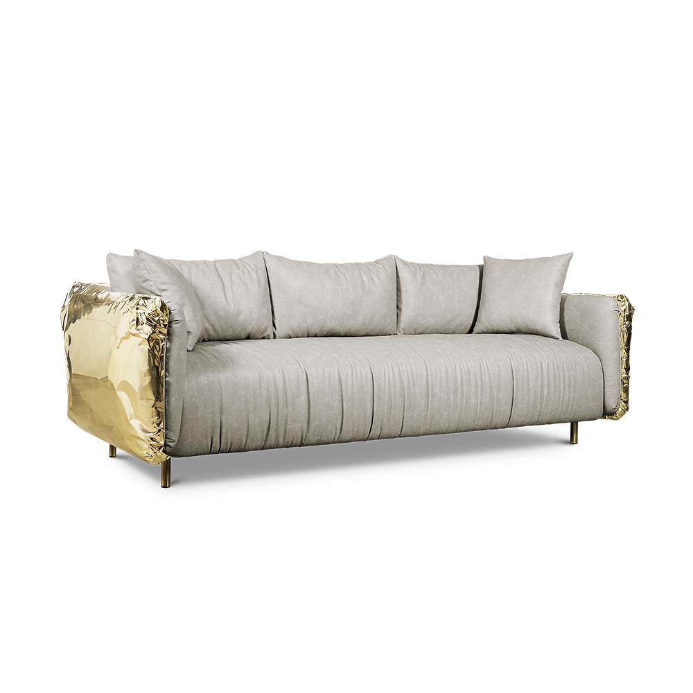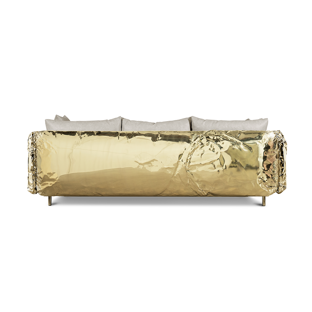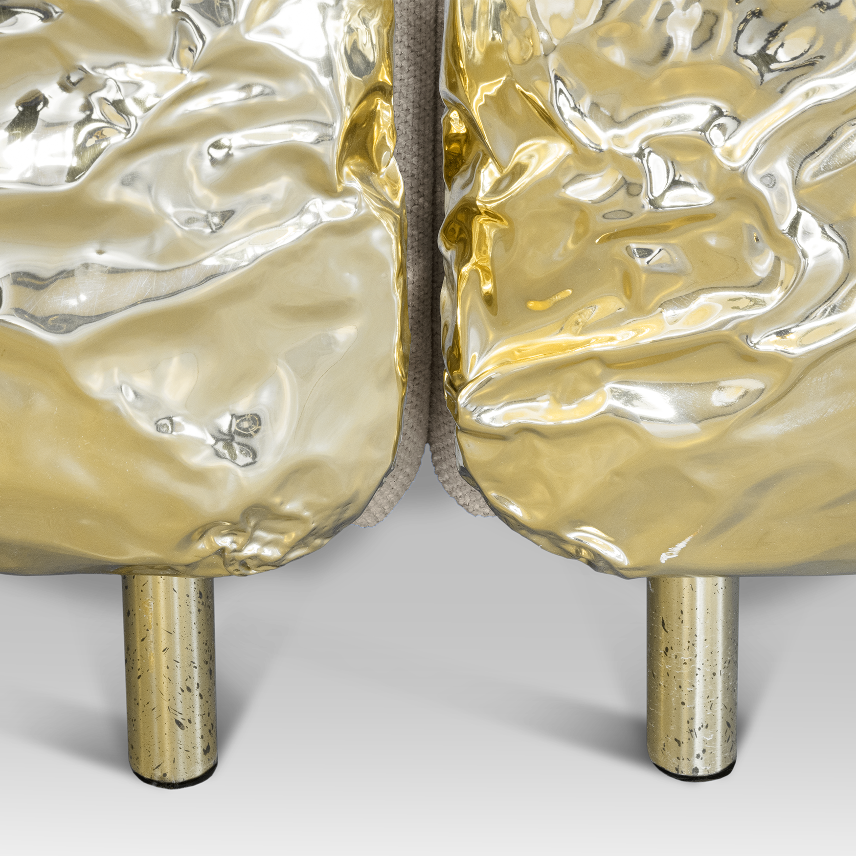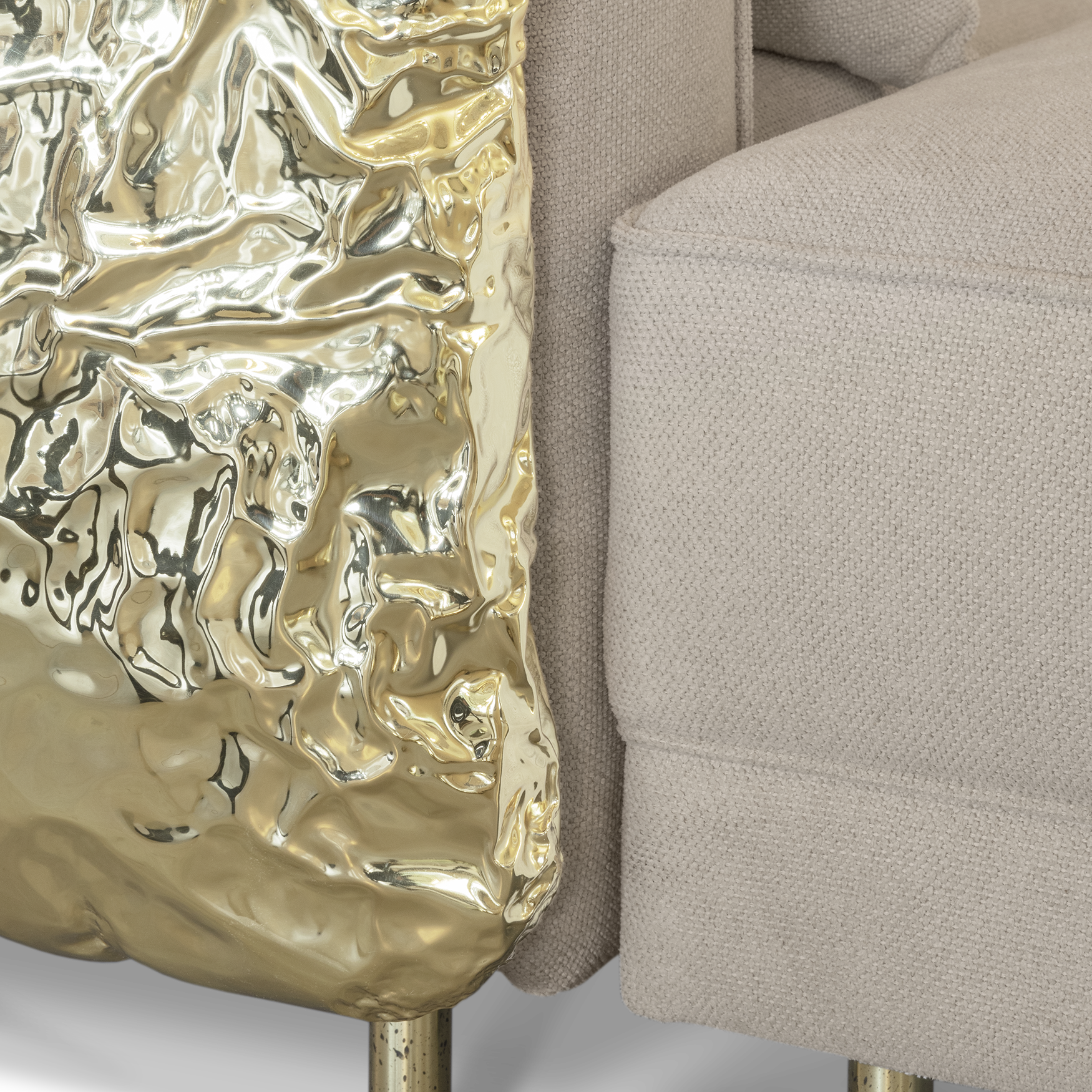 This modern luxury pure copper sofa features a base made of high-quality brass, shining brightly and showcasing its luxurious nature. U-shaped corner design, modular combination flexible and versatile, easily adaptable to various living room layouts. Seven spacious seats, paired with comfortable leather or fabric cushions, providing a soft touch and making sitting comfortable.