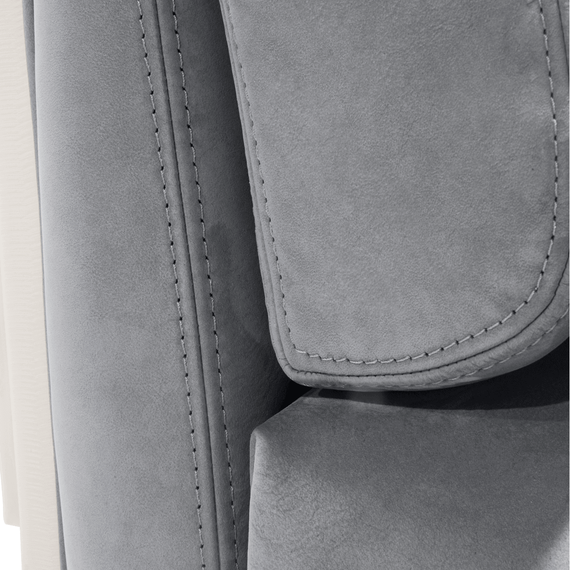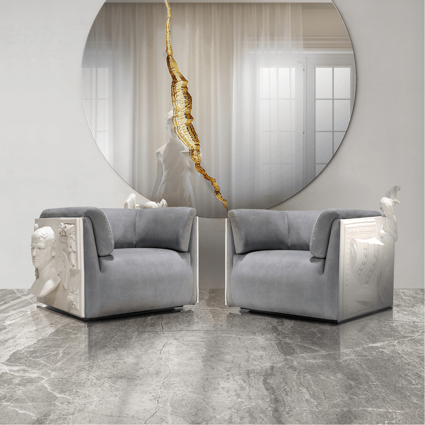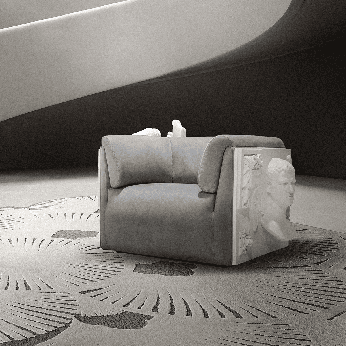 This high-end Italian designed solid wood frame sofa blends modern and classical charm. Selected gray nubuck fabric with soft texture and elegant color, adding a touch of understated luxury to the living room. The relief art decoration at the armrest showcases exquisite details and extraordinary taste. Solid wood frame is stable and durable, carrying comfort and quality.
