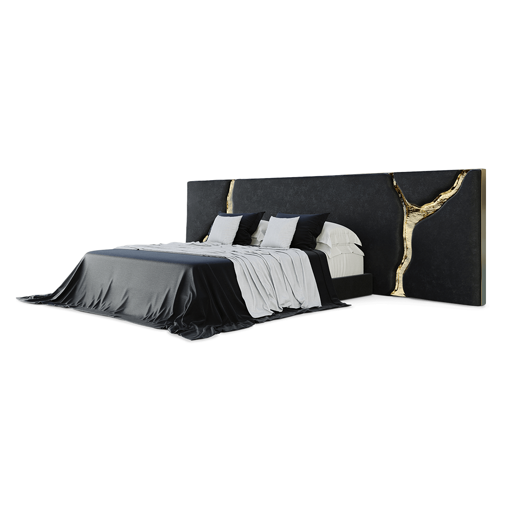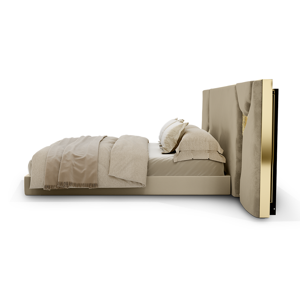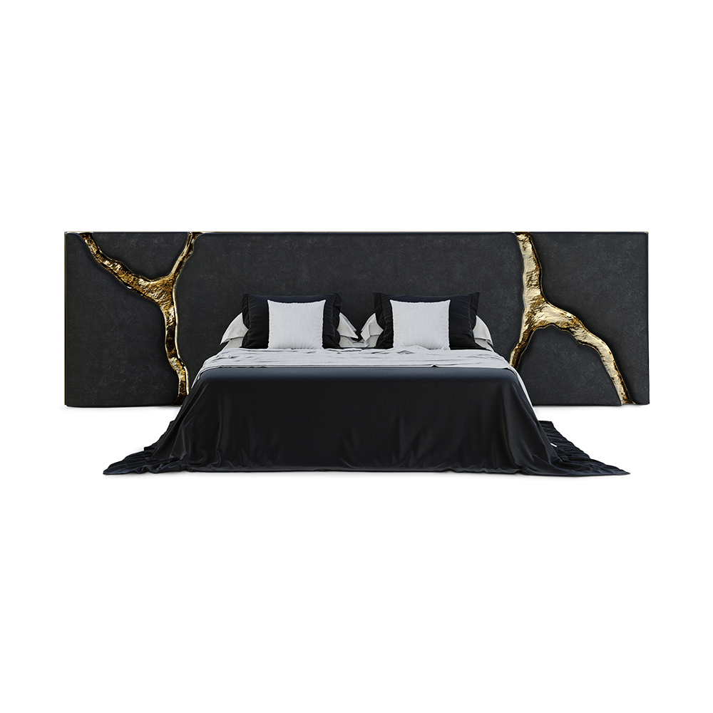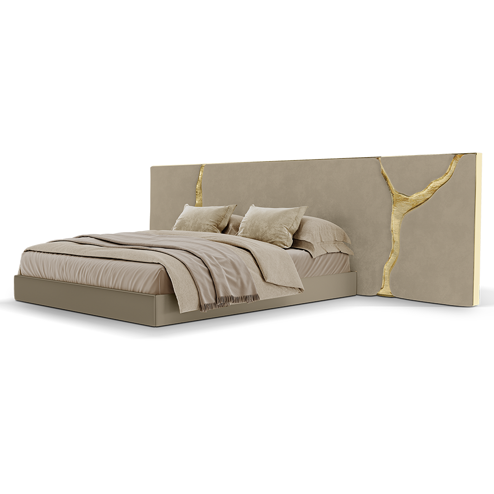 This Italian luxury brass designed bed perfectly blends natural inspiration with modern craftsmanship. The branch style headboard made of brass is elegant and unique like a sculpture, emitting a warm golden luster; The nubuck fabric bedding is soft and comfortable, providing you with intimate care. The king size bed is spacious, creating the ultimate sleeping space.