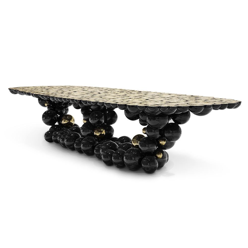 This Italian oval bubble design dining table features a luxurious gold tabletop paired with a deep bubble base, resembling an artistic treasure, injecting extraordinary style into high-end restaurants or luxury homes. It is not only furniture, but also an expression of lifestyle, making every meal a dual feast of sight and taste, showcasing unique taste and luxurious charm.