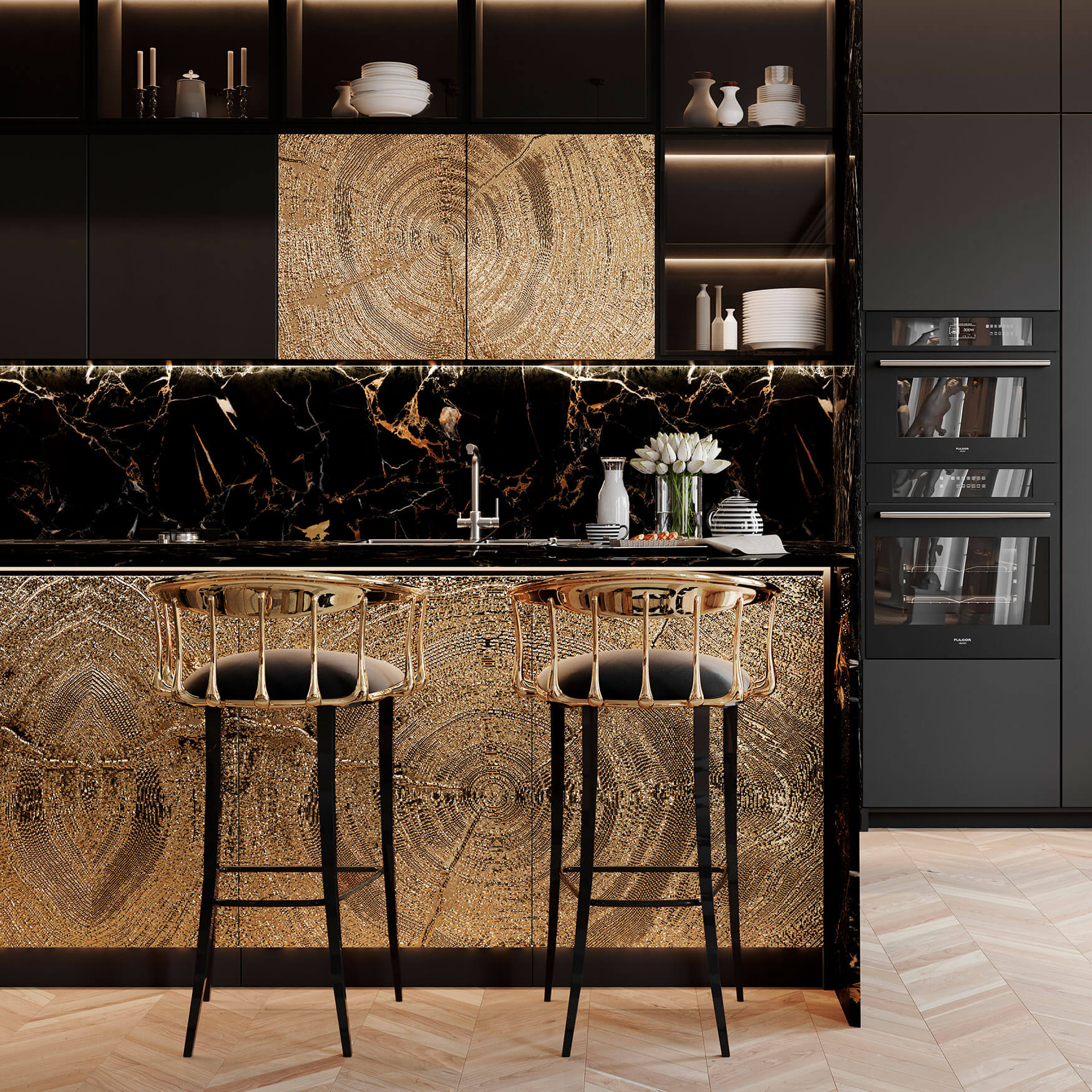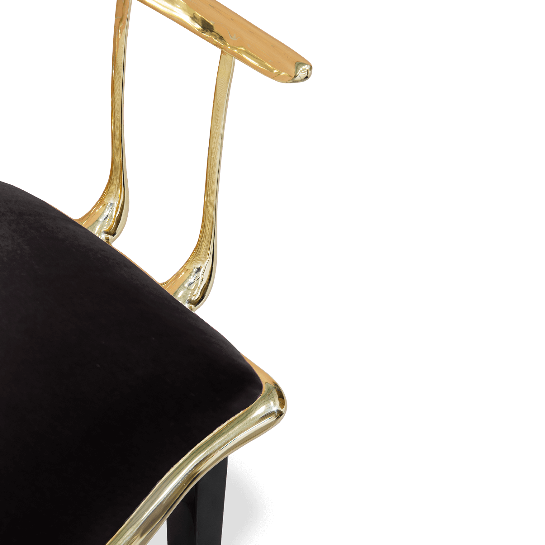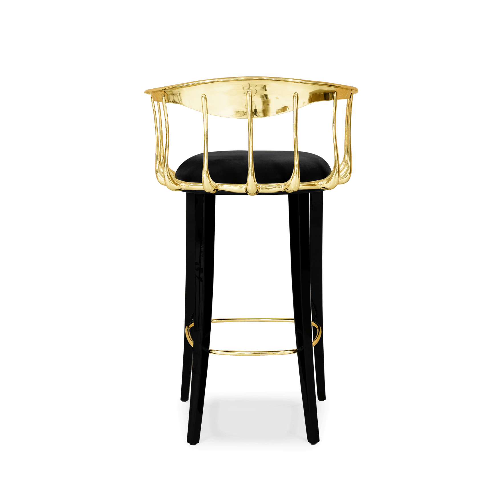 This modern style bar chair features a combination of black leather and gold brass, showcasing luxury and elegance. The soft touch of black leather and the luster of golden brass complement each other, making it both fashionable and practical, adding a touch of modern art to your space.