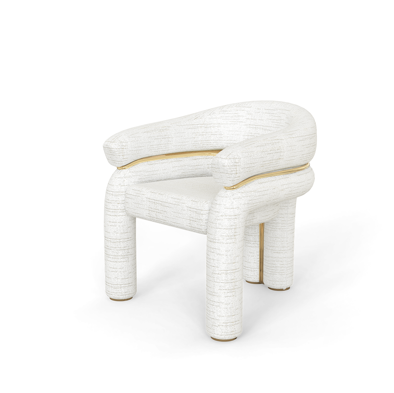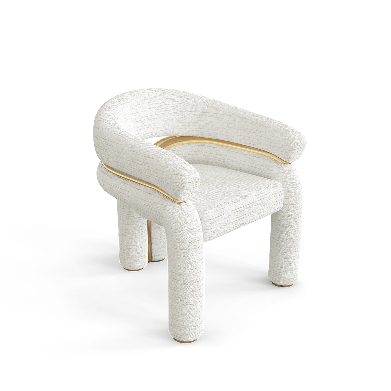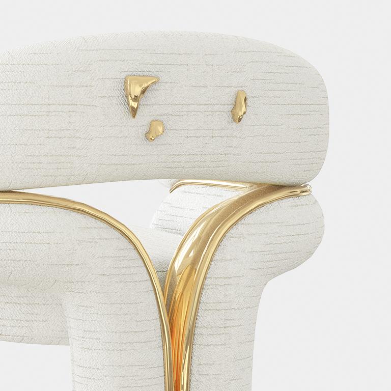 This modern style chair features a perfect combination of frosted fabric and brass material, showcasing a unique shape and exquisite texture. The frosted fabric on the backrest and armrests provides a soft touch, while the brass decorations on the chair legs and borders add a modern luxury, injecting a fashionable and artistic atmosphere into the home space.