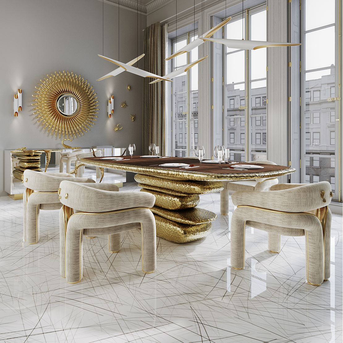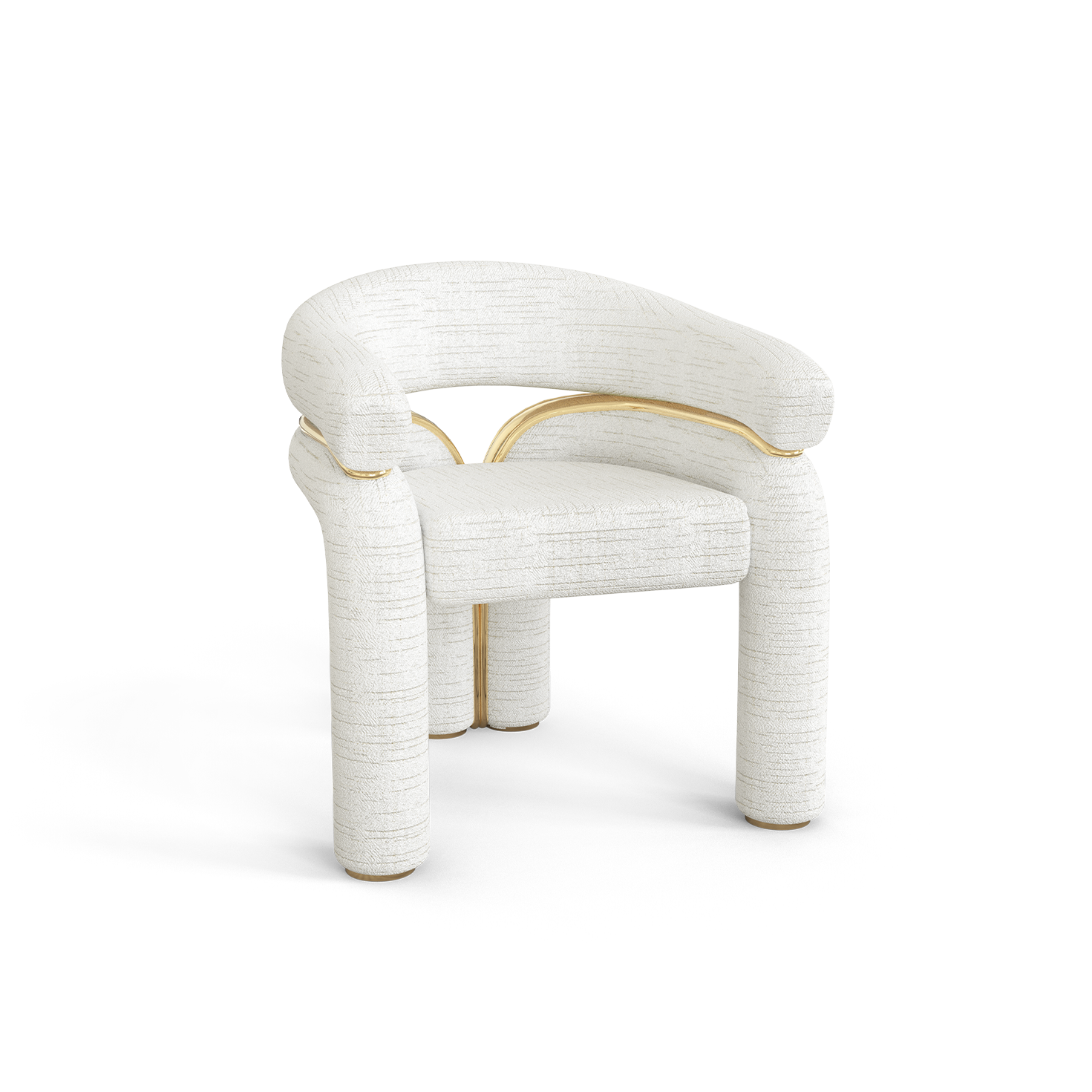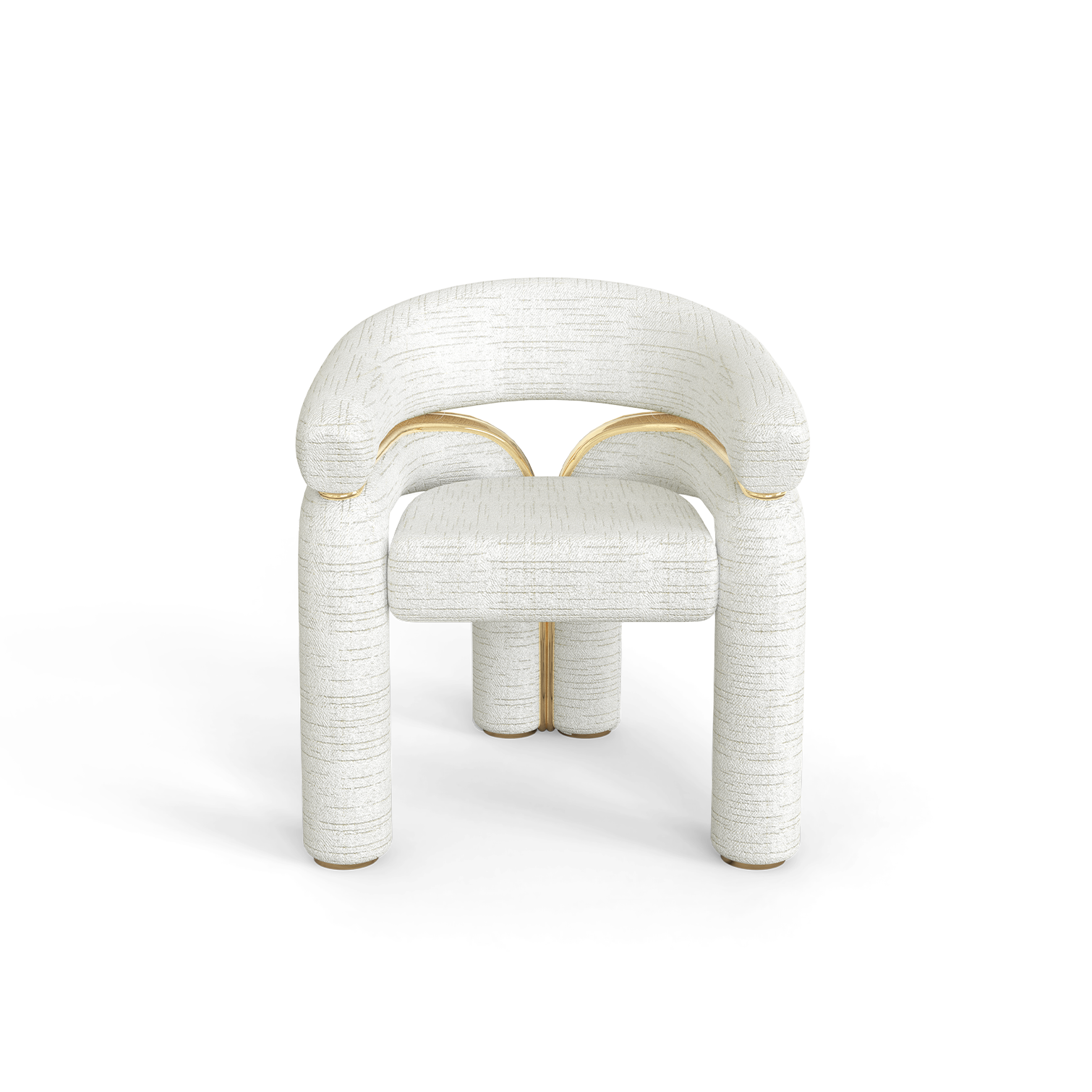 This modern style chair features a perfect combination of frosted fabric and brass material, showcasing a unique shape and exquisite texture. The frosted fabric on the backrest and armrests provides a soft touch, while the brass decorations on the chair legs and borders add a modern luxury, injecting a fashionable and artistic atmosphere into the home space.