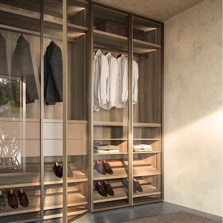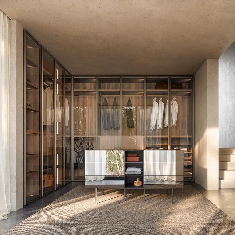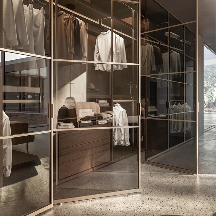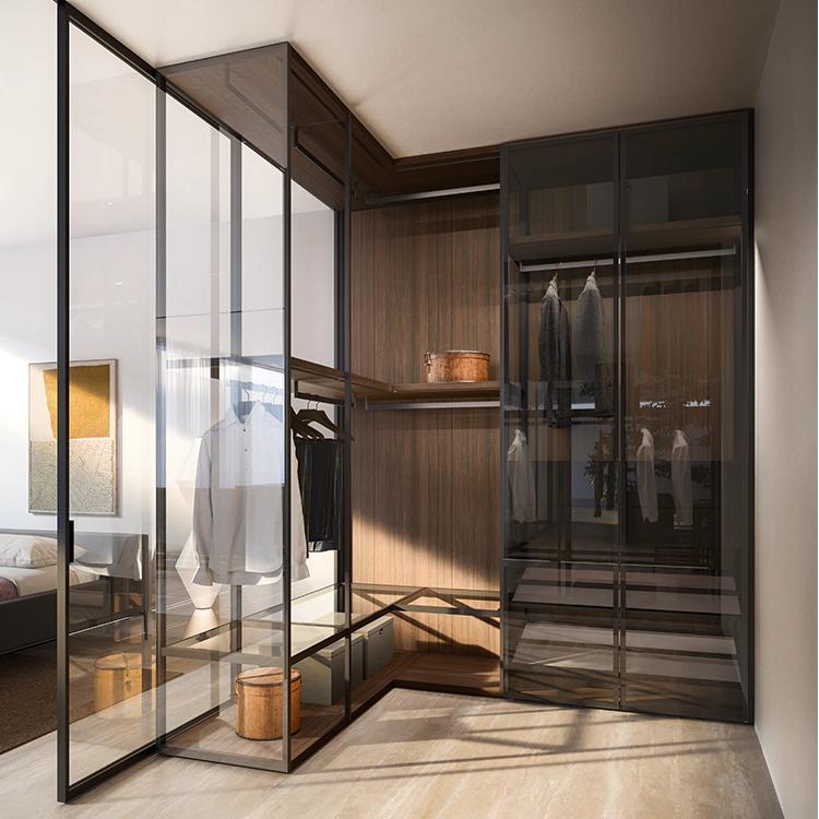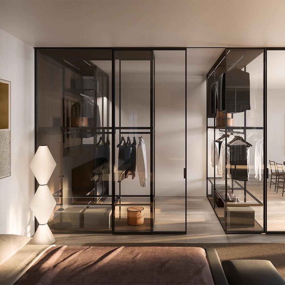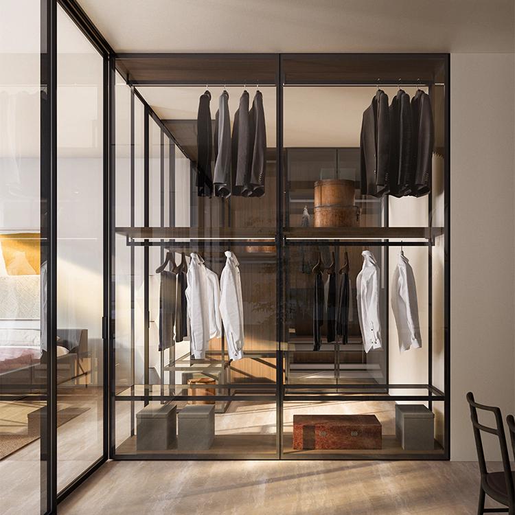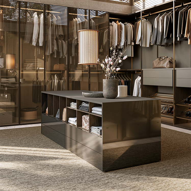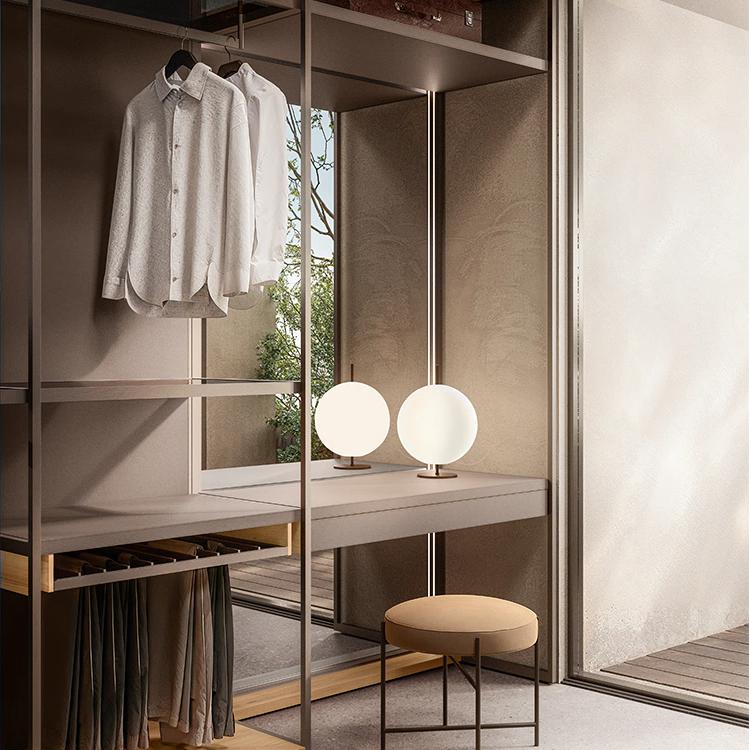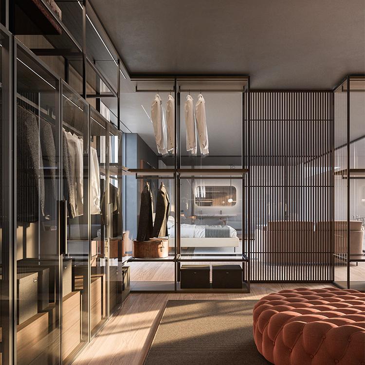 The design of this wardrobe upgrades the cloakroom into a personalized space that combines aesthetics and functionality. It achieves spatial interaction through flexible partitions and door systems, integrates lighting to highlight the beauty of details, and is suitable for single or double use scenarios. It provides decorative strips or glass storage solutions, giving unlimited customization possibilities to the space.