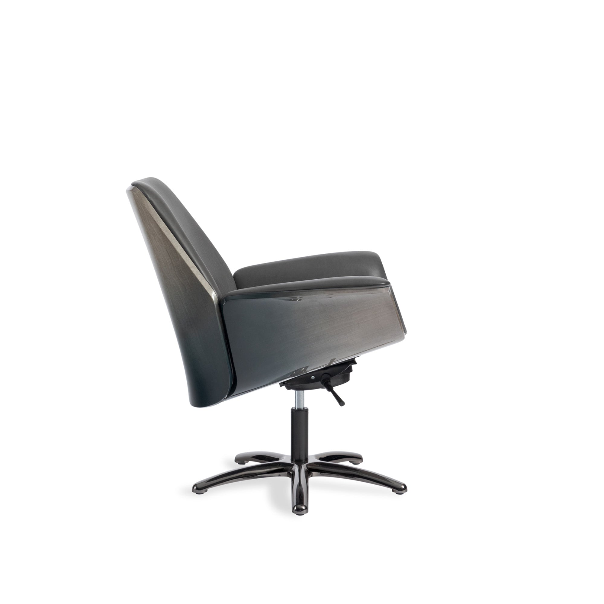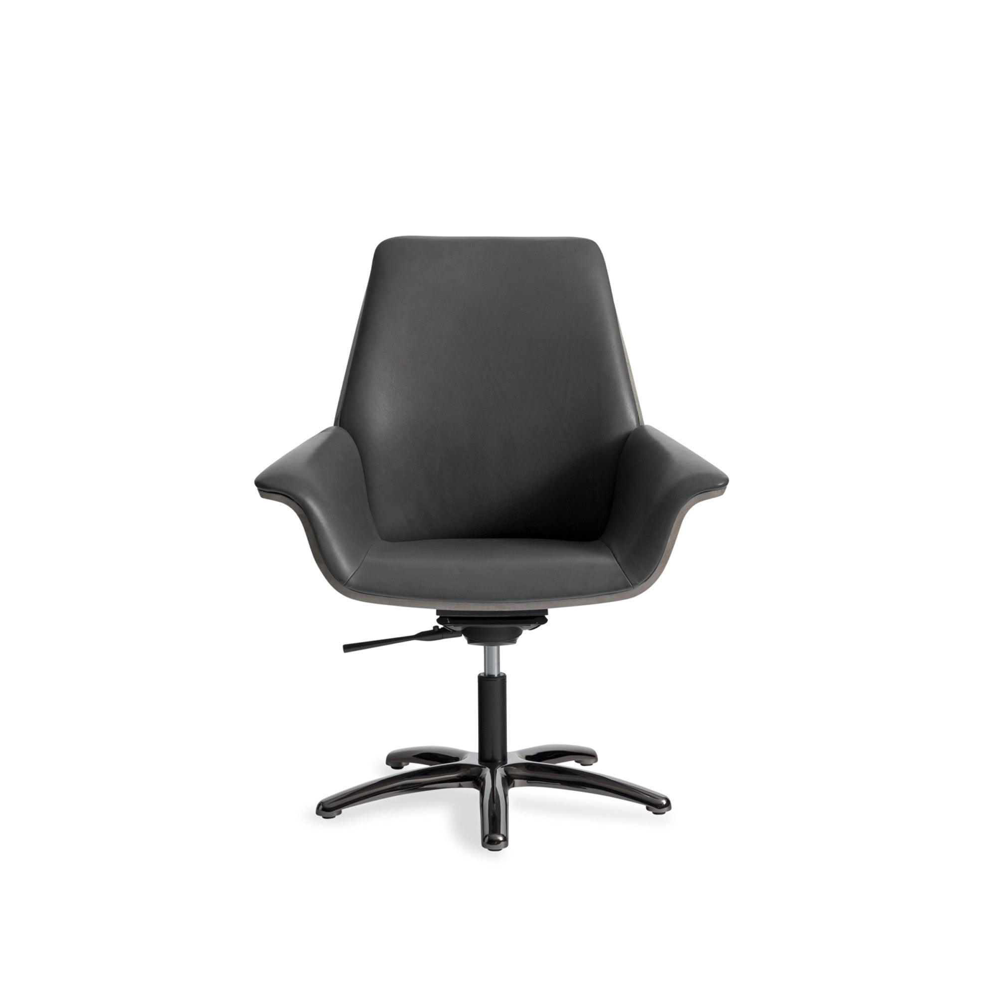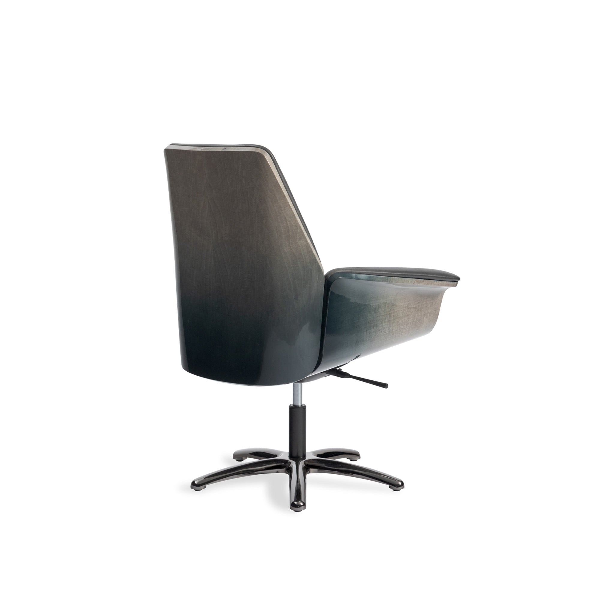 The office chair is smooth and elegant, with strong visual impact. The back design is simple and balanced with the desk volume, achieved through three-dimensional curved surfaces. The seat extends into two armrests, which naturally complement the shape of the table.