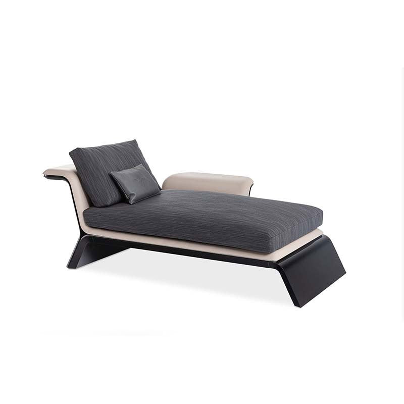 This Noble Consort Chair features a three-layer frame structure: the outer layer is made of curved wood, with options including glossy black paint or warm grey piano key maple, smoked liquid amber, and walnut Briar root veneer; The middle layer features a gun grey metal outline, while the inner layer is wrapped in leather. The thickness of the chair body changes naturally, the backrest is comfortable and visually impactful, and the armrest shell is rounded like a bow, outlined by hyperbolas.