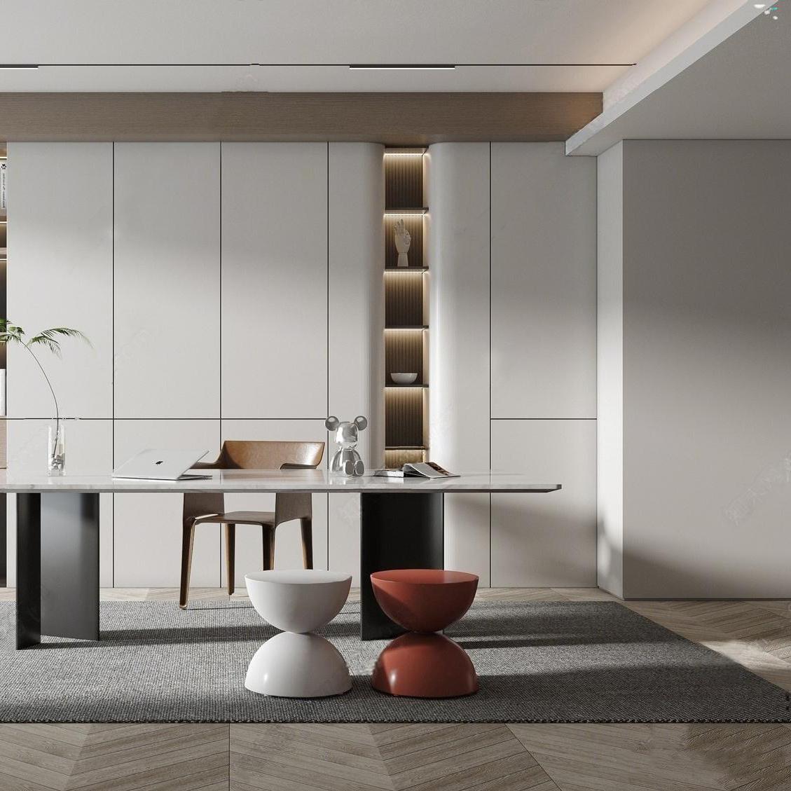 This office bookshelf is designed in combination with a storage cabinet, with a simple and fashionable style. The color tones are mainly white and light wood, creating a fresh and natural office environment. The bookshelf adopts a combination of open and closed design, which not only facilitates the display of decorations and books, but also hides clutter and keeps the space clean.