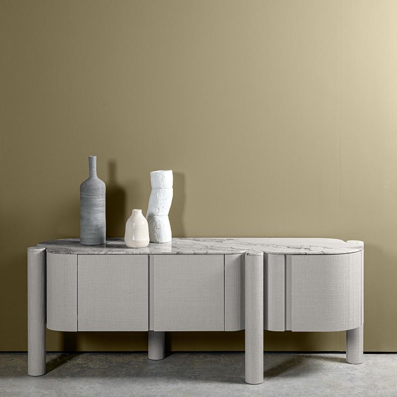 This storage cabinet combines the beauty of marble and rattan, with curves and vertical supports, showcasing a unique temperament through subtle connection design.