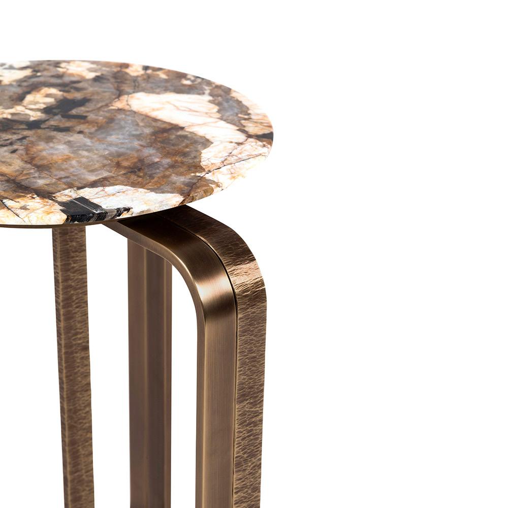 This coffee table comes in a variety of sizes, with a rounded marble tabletop with gradually thinner edges and an exquisite metal base, showcasing an elegant design.