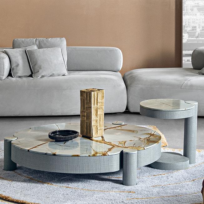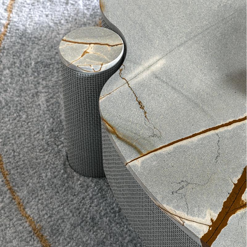 This coffee table combines unique marble with exquisite rattan texture, enhancing the beauty of curves. The vertical elements of the supporting structure come into contact with the desktop, creating subtle pressure and creating a unique connection effect.