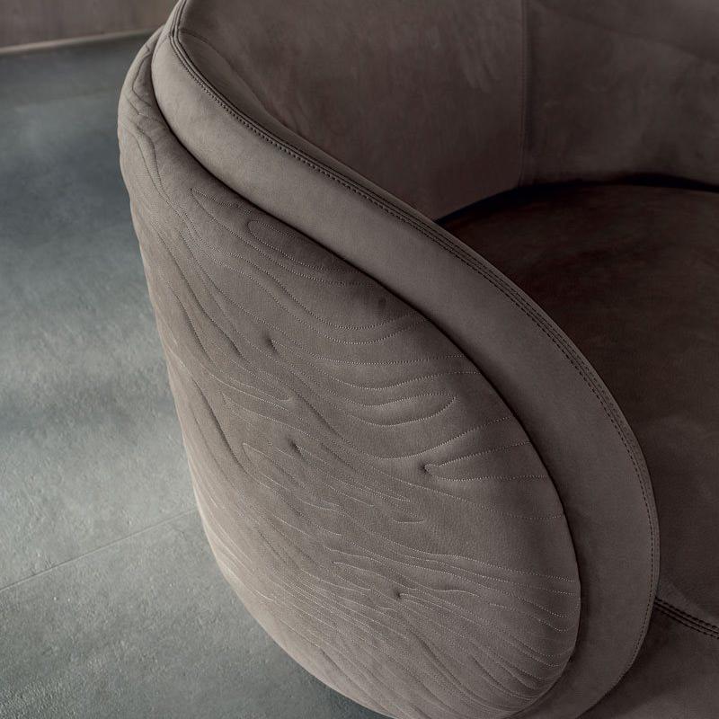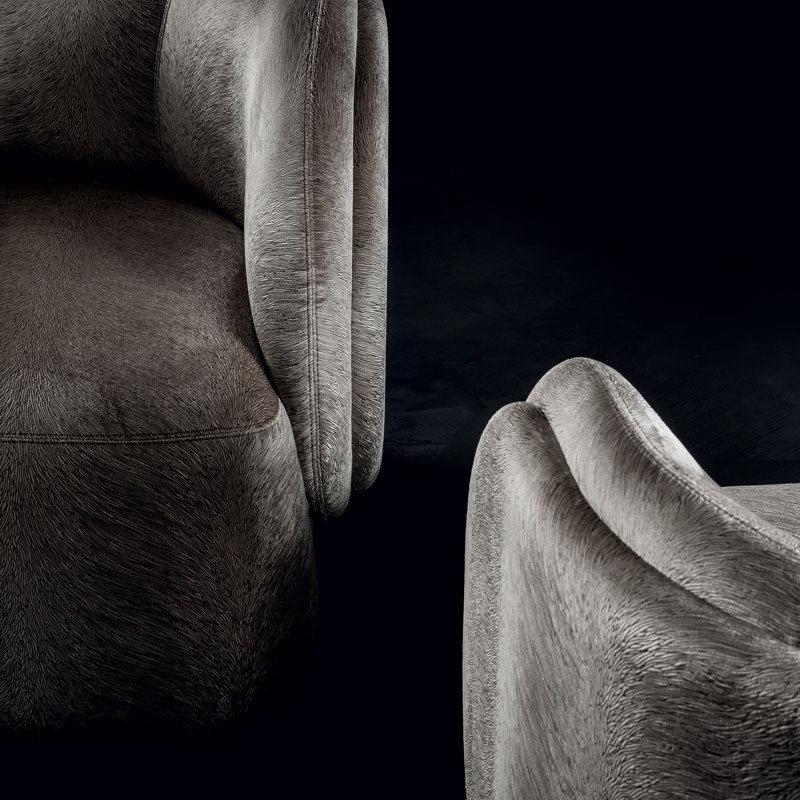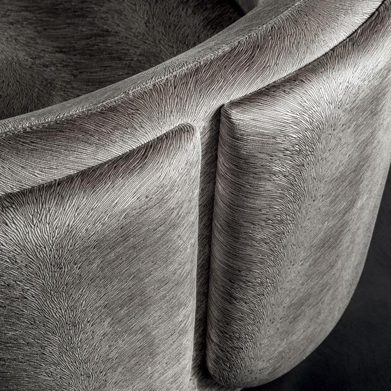 This small armchair uses a wooden frame and elastic band, together with high-density polyurethane foam. The seat cushion is soft and durable, and the surface is covered with polyester and white fabric fabric. The base is a chrome plated metal ring, providing various coatings such as gradient copper, bright brown, black rose gold, etc. The curved backrests on both sides resemble elegant decorative wings, and the overall design is exquisite and unique. The fabric cover is non removable.