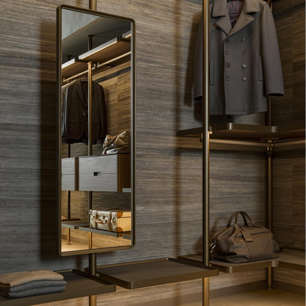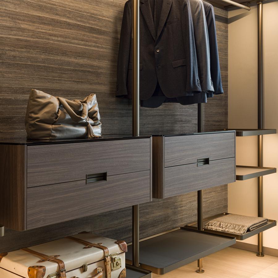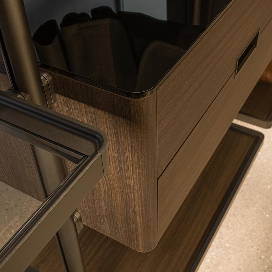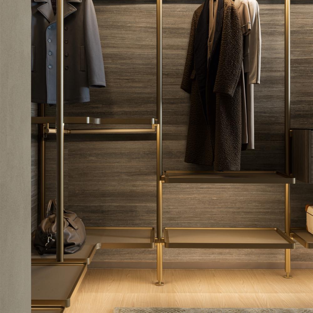 Selected materials, minimalist layout, balancing practicality and aesthetics. Say goodbye to clutter and redefine the sense of order in the dressing room. Every inch of space is serving your taste. From disorder to order, make life more stylish. The collision of wood and metal interprets the aesthetics of high-end living.