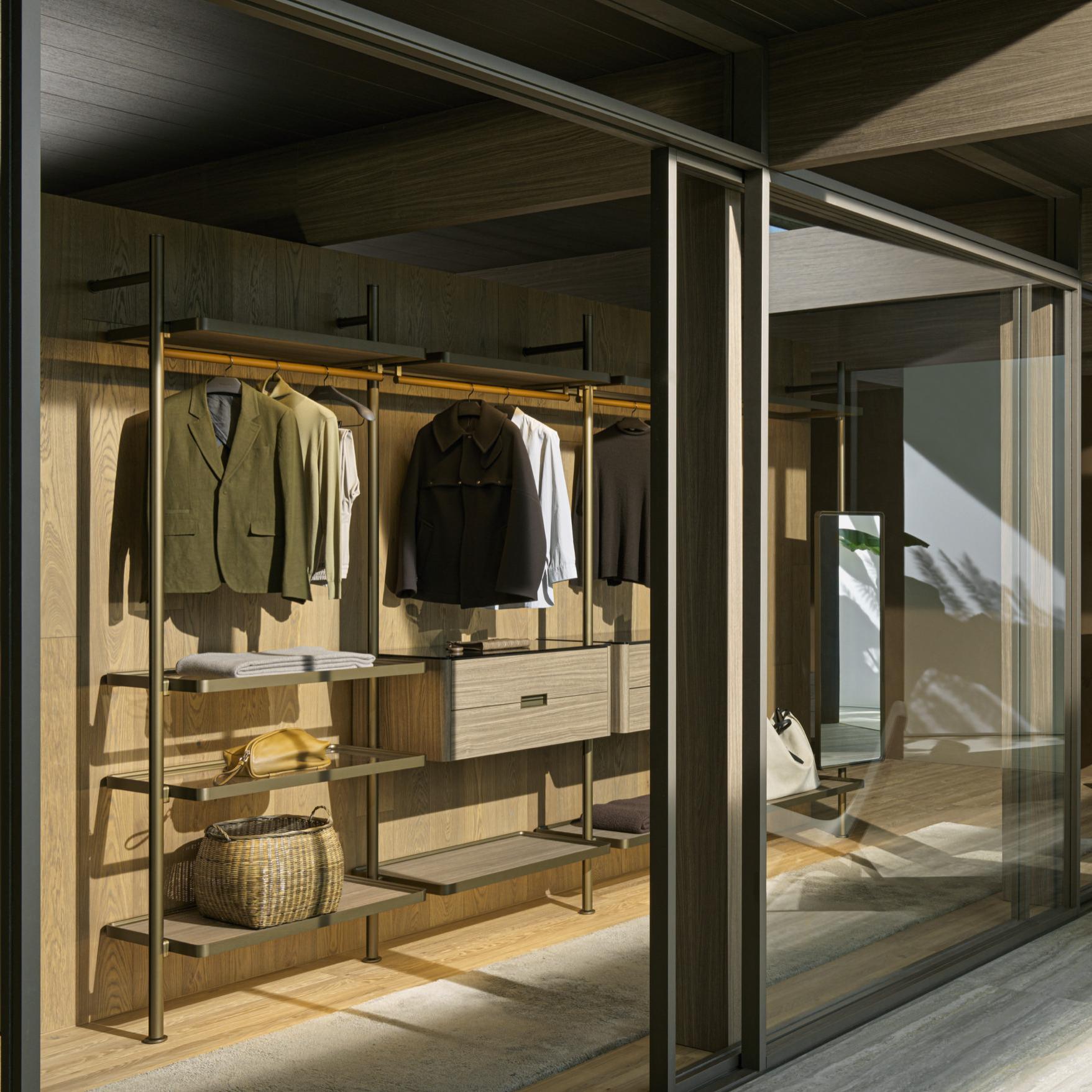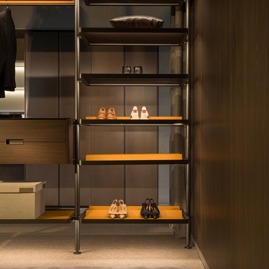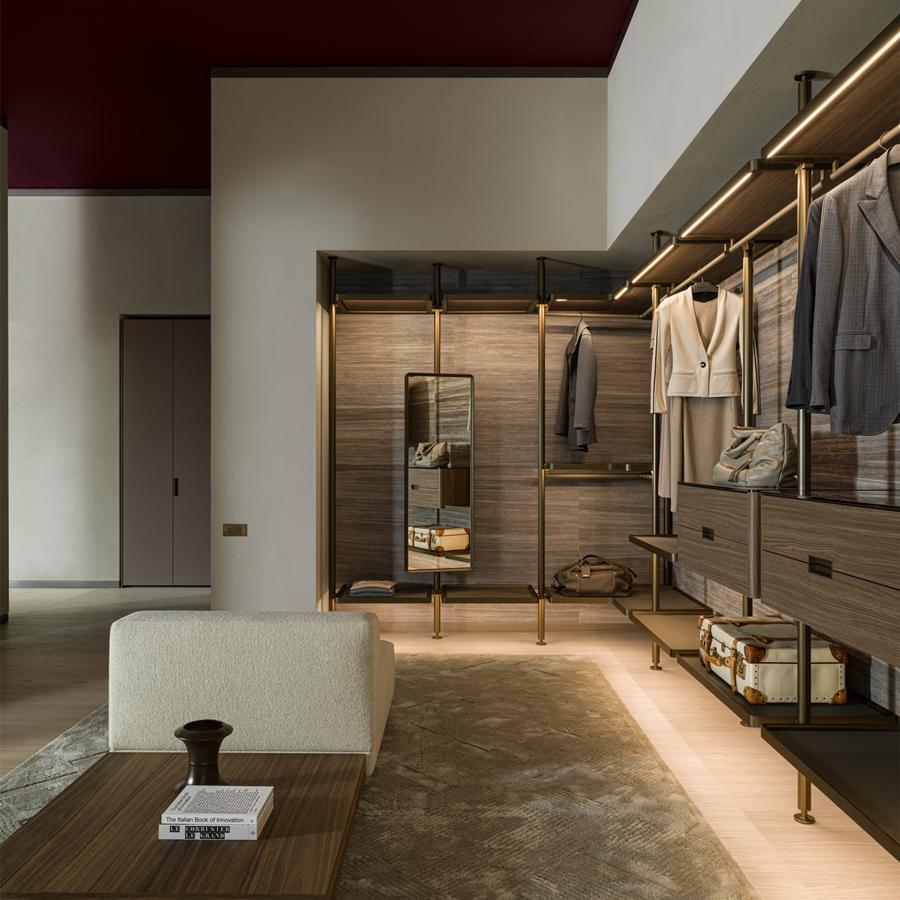 Selected materials, minimalist layout, balancing practicality and aesthetics. Say goodbye to clutter and redefine the sense of order in the dressing room. Every inch of space is serving your taste. From disorder to order, make life more stylish. The collision of wood and metal interprets the aesthetics of high-end living.