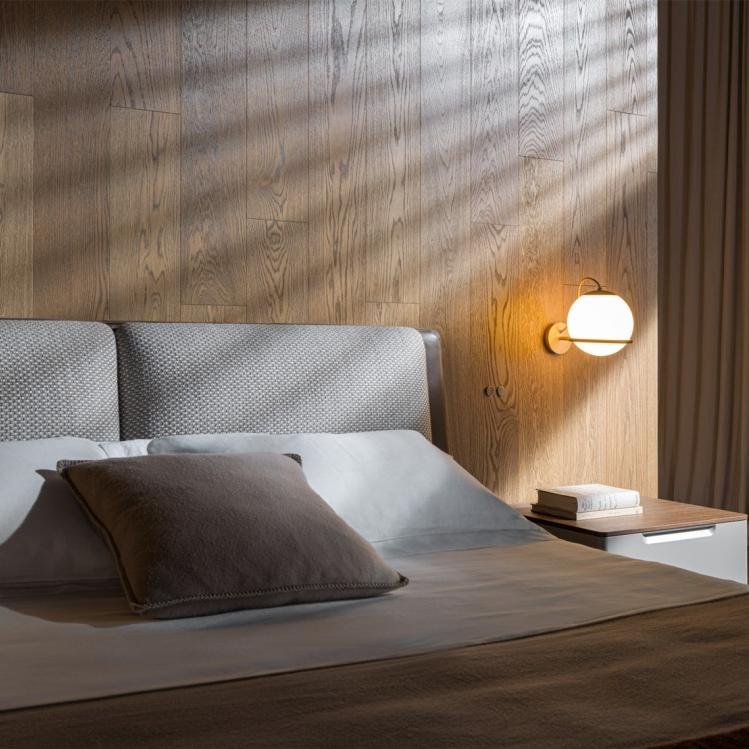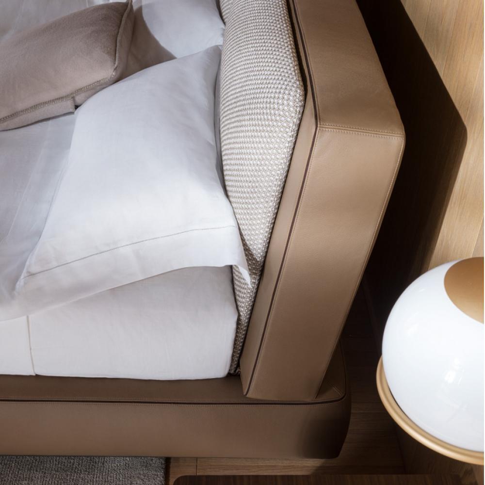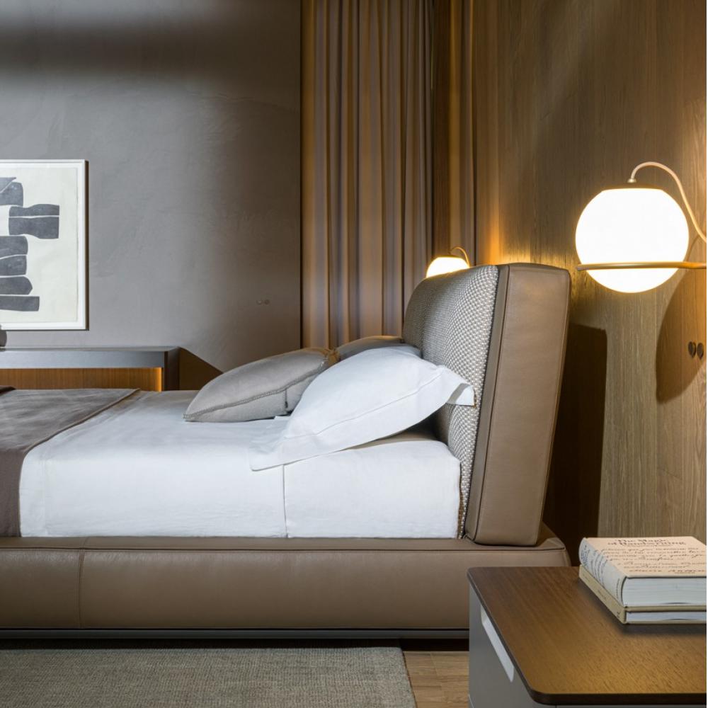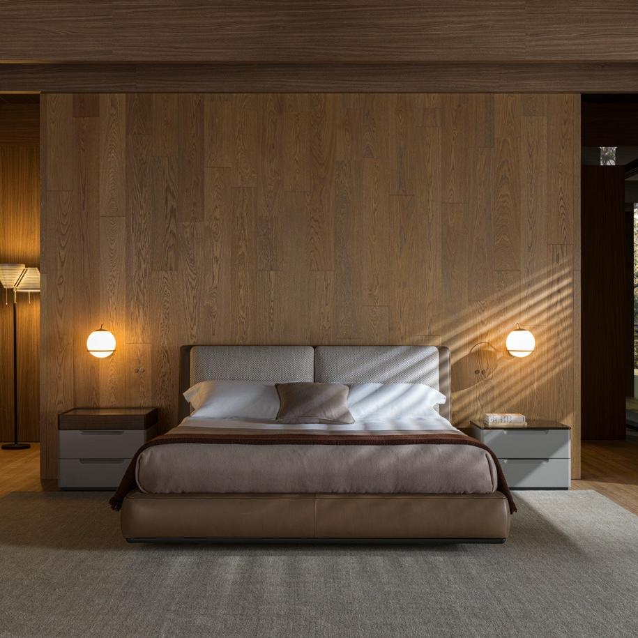 This bed is designed in an elegant style to create an independent 'rest island', suitable for multiple bedroom styles. Its rounded edges, soft lines, and tin frame decoration showcase delicate craftsmanship. The bed height can be adjusted, paired with a square backrest and comfortable cushion, combining functionality and aesthetics.