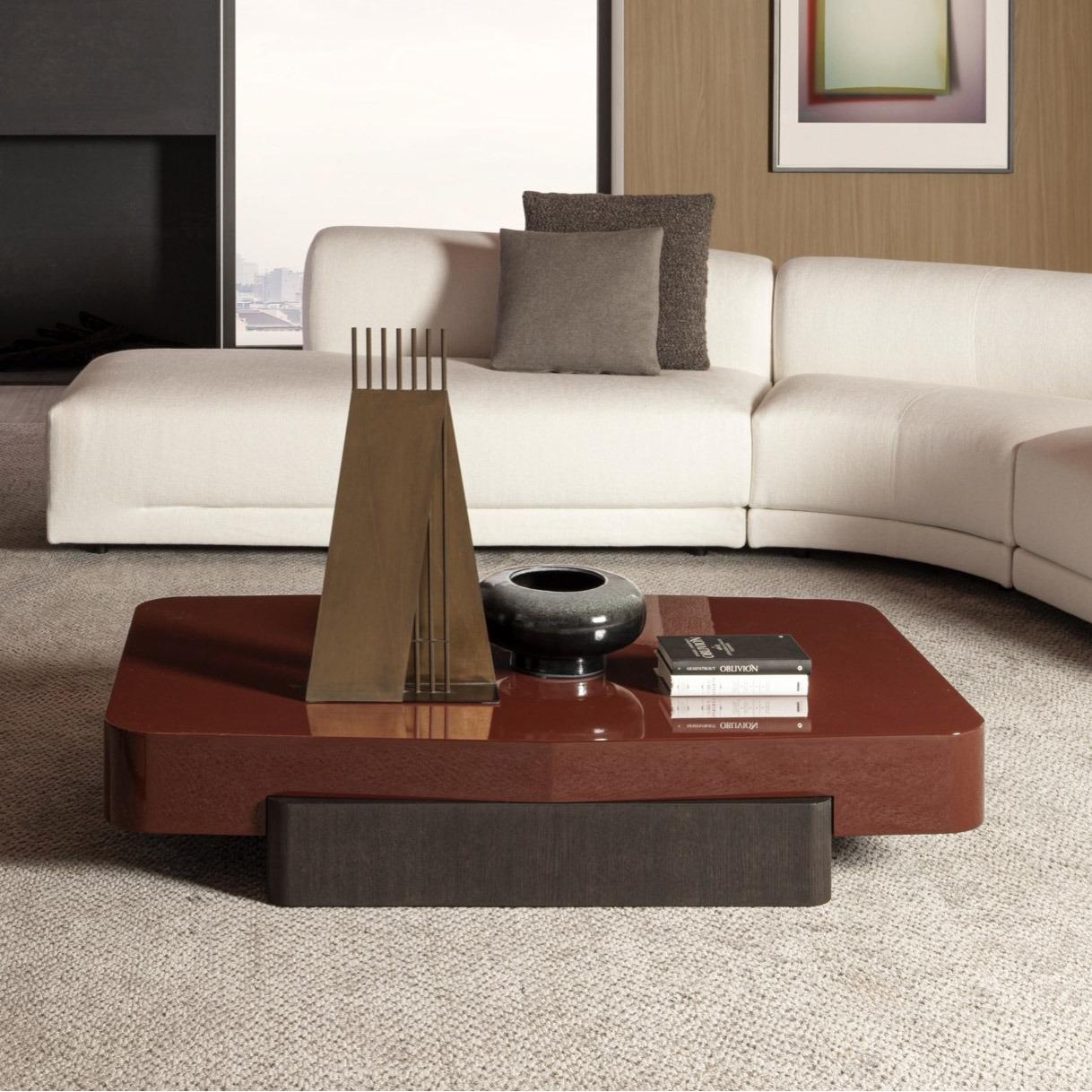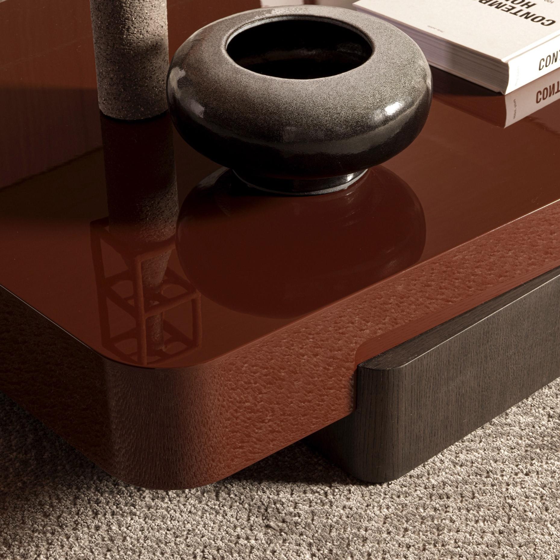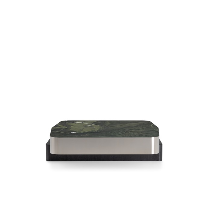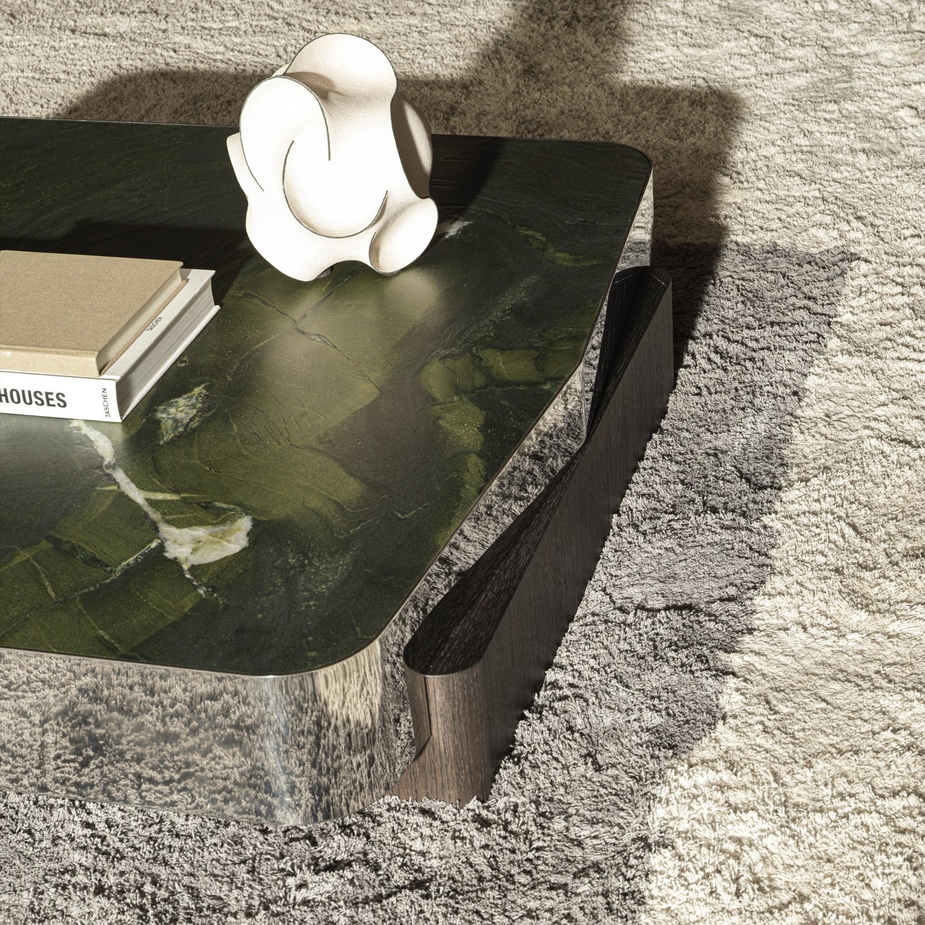 This coffee table has a distinct style and diverse functions, suitable for modern spaces. It integrates graphic lines and dynamic shapes into sofa combinations, and can also be used independently. Modular design supports flexible configuration, with a desktop made of high gloss paint or marble material, paired with bright steel edges, and a base available in coffee oak or black oak for a striking contrast.