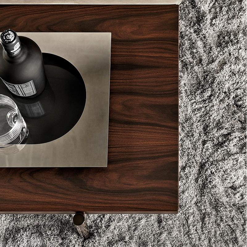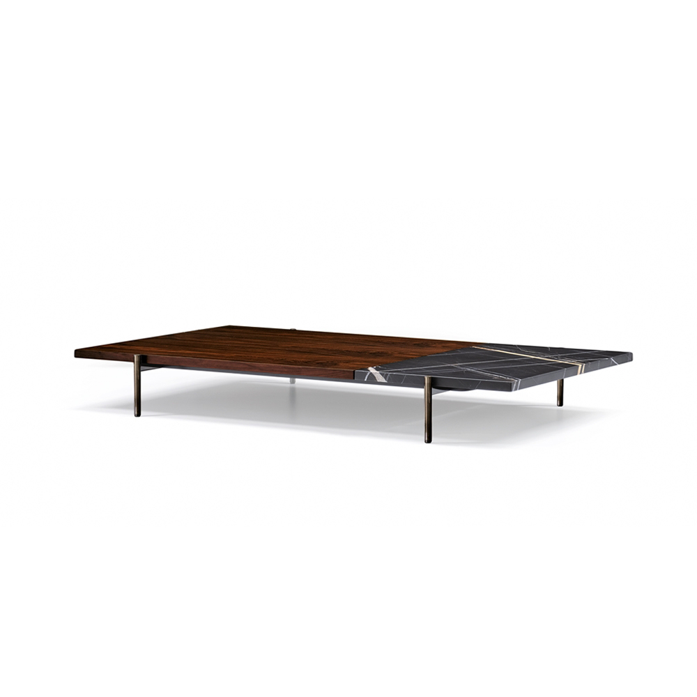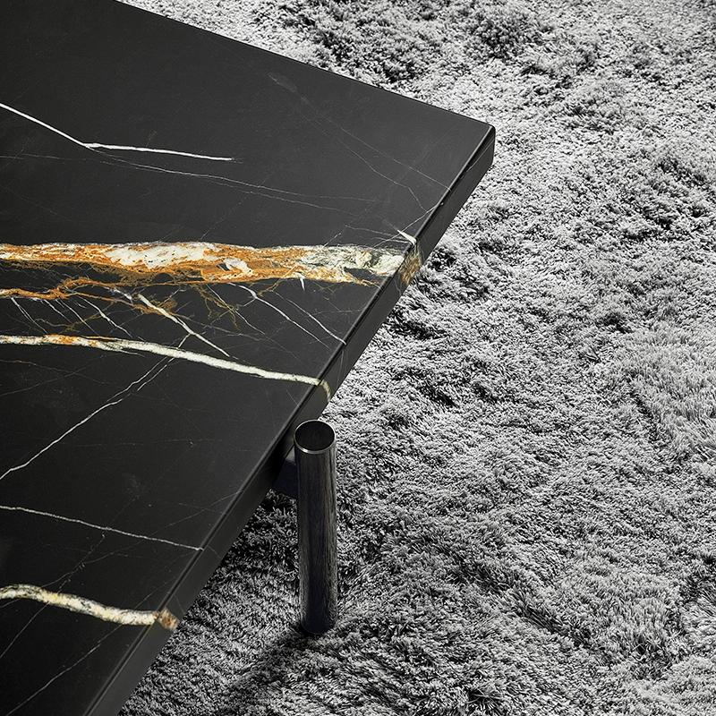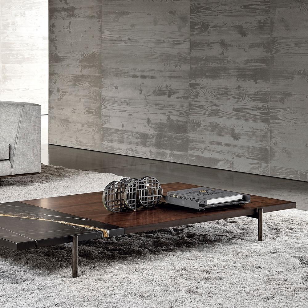 This coffee table is supported by lightweight metal legs, paired with high-quality materials such as marble and wood, showcasing a modern textured style. Coffee tables are available in square and rectangular shapes, with multiple material combinations and height options.