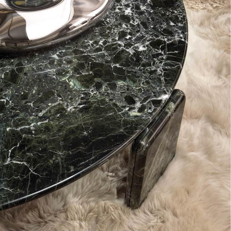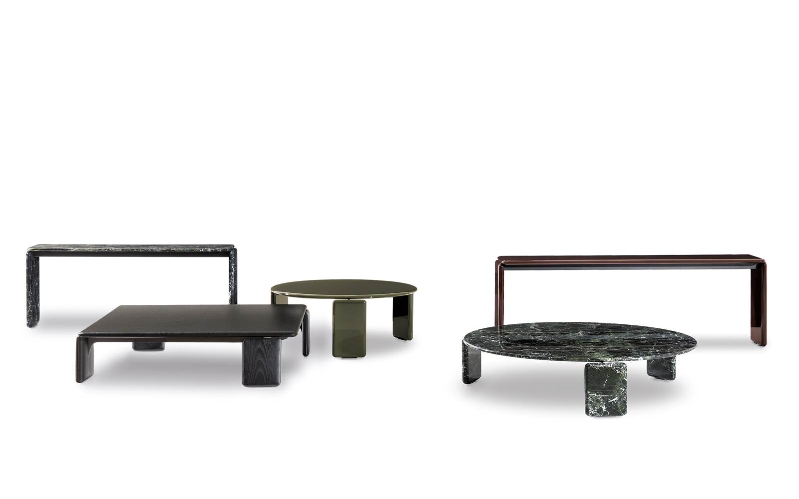 This coffee table is made of marble, wood, or glossy paint materials, with a lightweight tabletop and thick, rounded legs that highlight a sense of suspension in contrast. It offers a variety of sizes and shapes, suitable for modern home spaces.