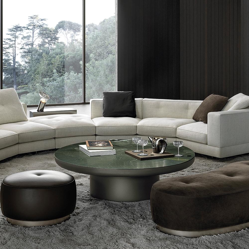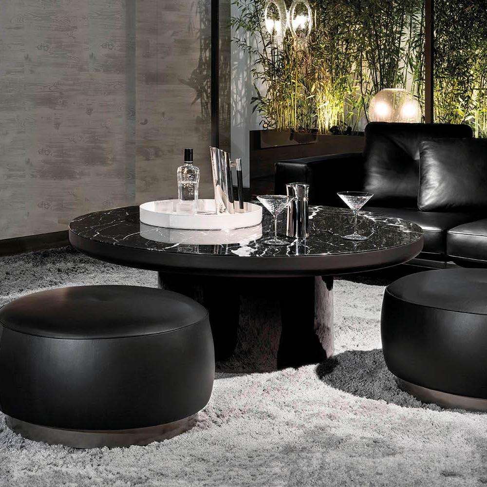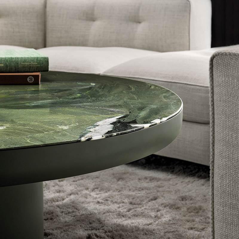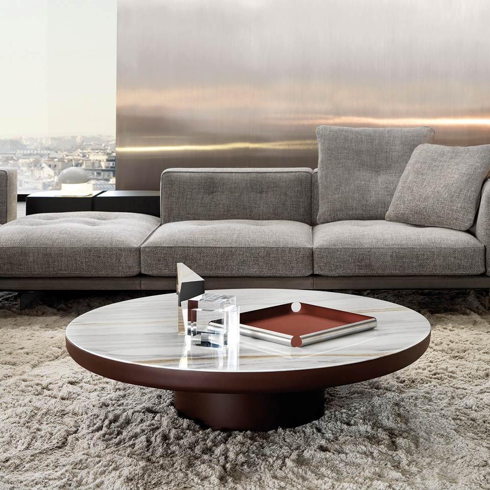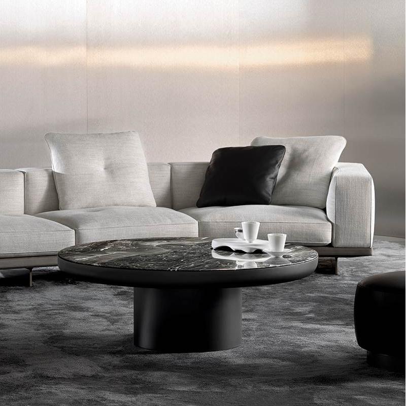 This coffee table is mainly made of marble material, with a circular or rounded rectangular design, paired with an oval frosted paint bracket, cleverly hiding the thickness of the tabletop and reducing visual weight. Some styles have bases that match the desktop color, presenting a monochrome block visual effect.