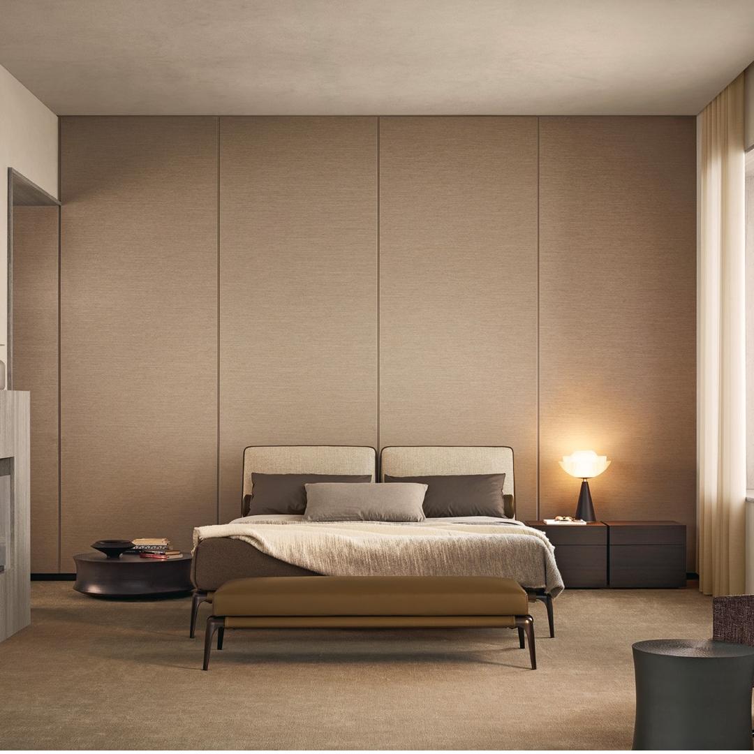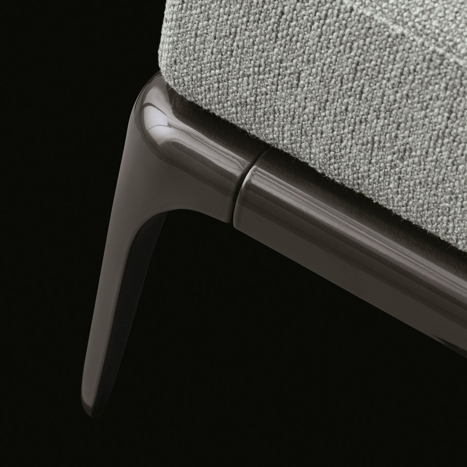 This bench blends Nordic and Italian styles, showcasing exquisite woodworking and elegant fabric craftsmanship. Its iconic slender and slightly curved armrest has a smooth touch, showcasing handmade craftsmanship, covered with exclusive fabric or saddle leather