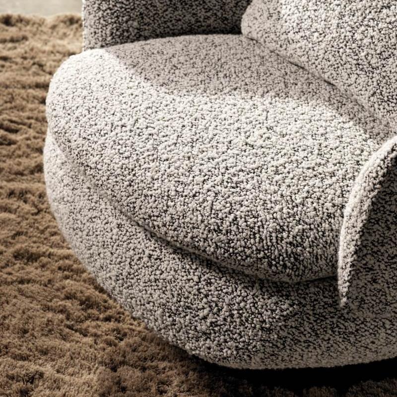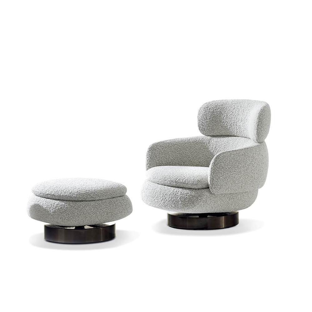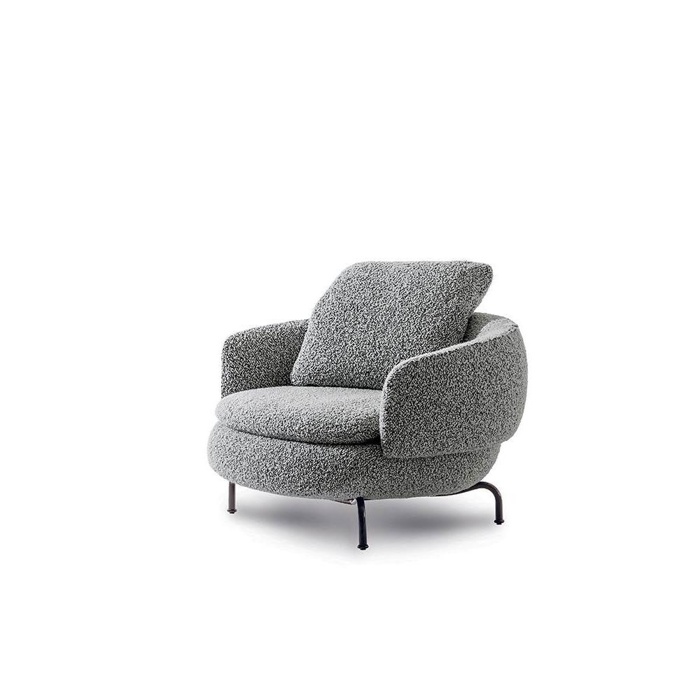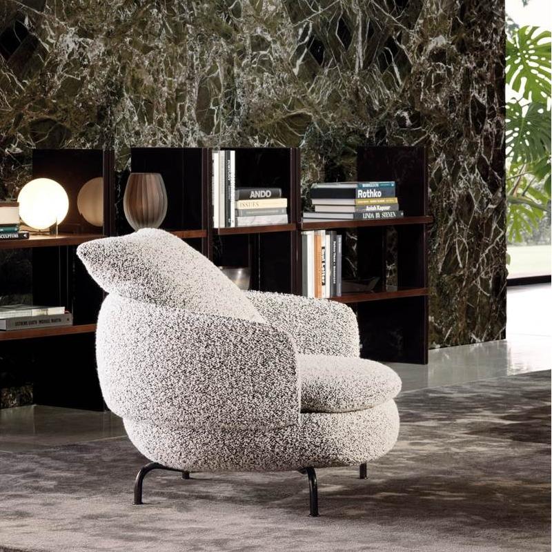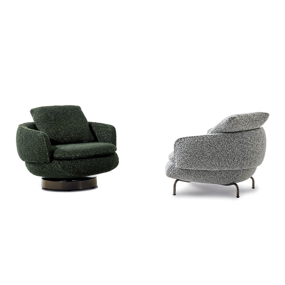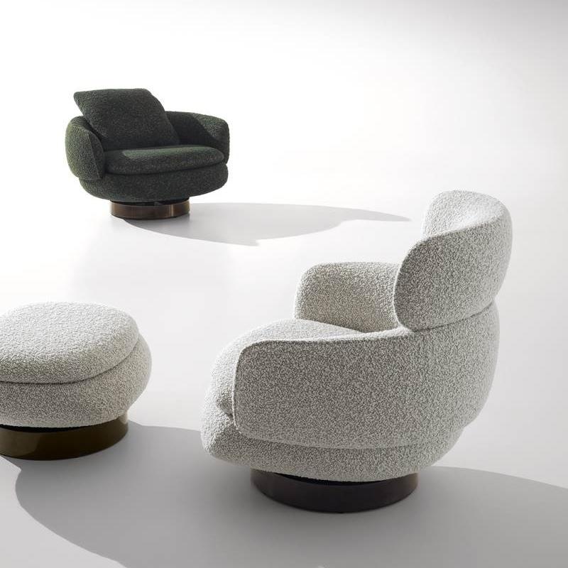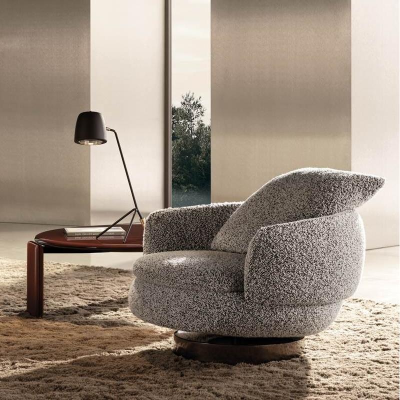 This leisure chair is inspired by the semi-circular curve of the backrest, combining sculptural and approachable elements to outline an elegant and smooth silhouette. The base can be fixed or rotated, providing flexible options for home and hotel scenes, creating a comfortable conversation space, and adding an artistic atmosphere to life.