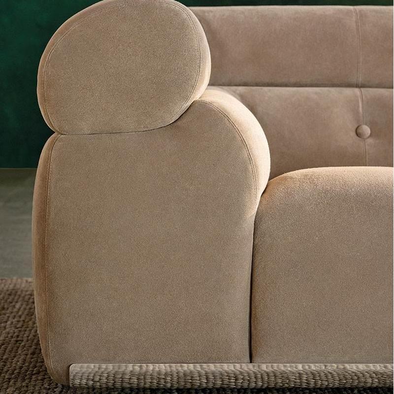 This minimalist sofa is inspired by the retro trend of the 1960s and incorporates modern ergonomics. The tilted seats fit the body, and the soft material is warm and comfortable. Modular design is flexible and versatile, allowing for free combination and adaptation to diverse spaces. Exquisite embroidery and aluminum frame decoration highlight quality details, interweaving retro and modern styles, shaping a unique home style.