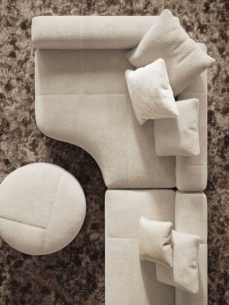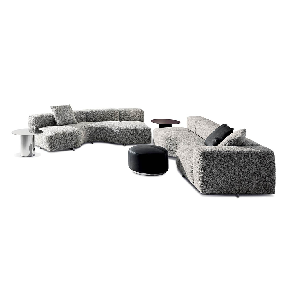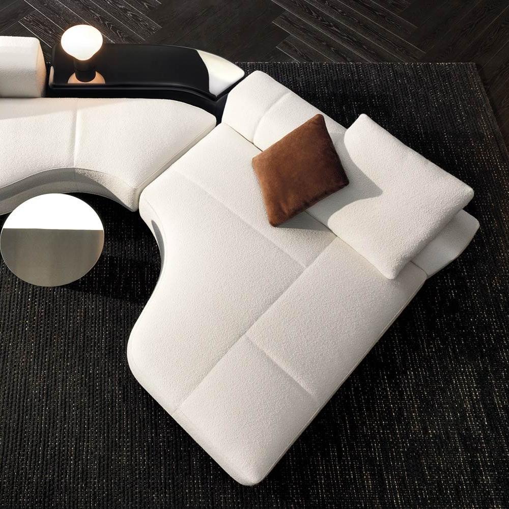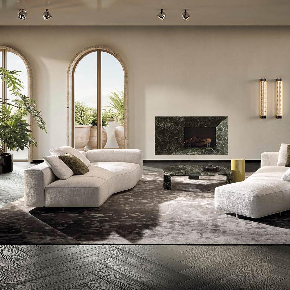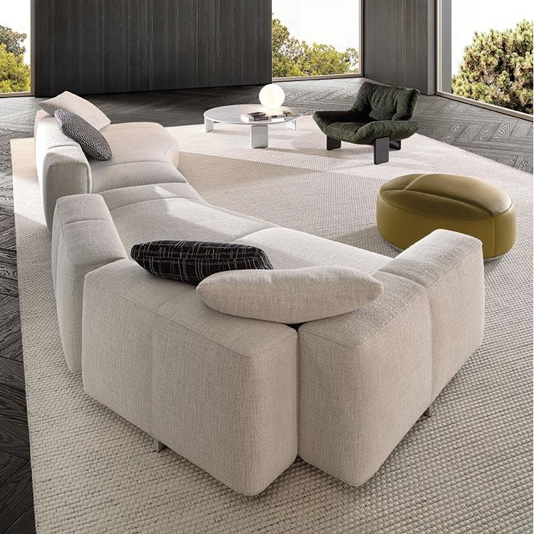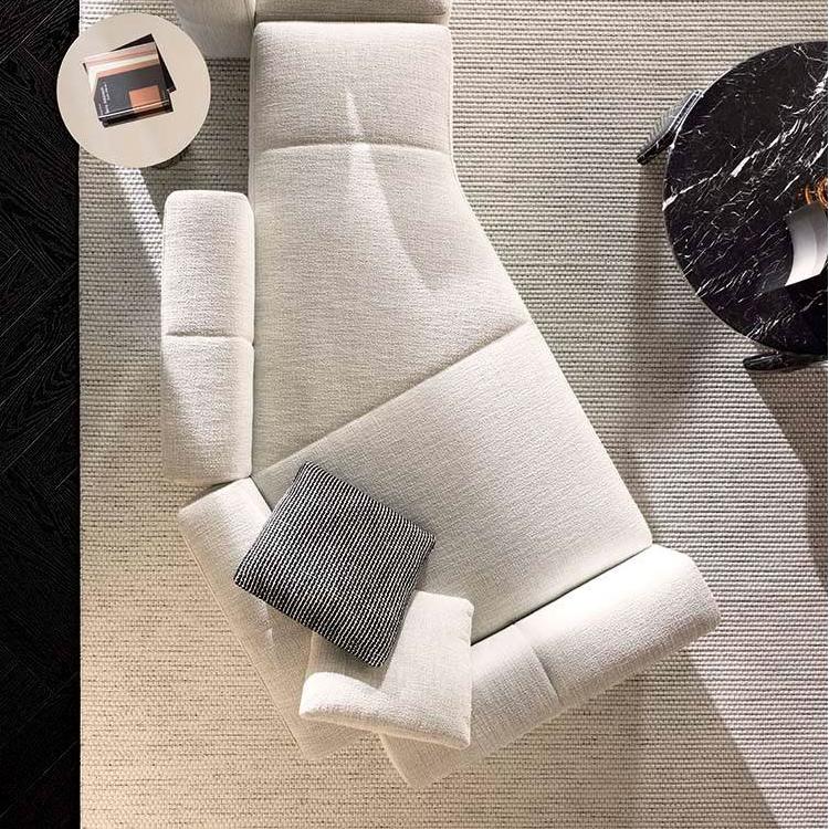 This minimalist sofa showcases the retro charm of the 1970s. The back curve and dividing gap make the sofa flexible and versatile, with asymmetrical stitching and aluminum feet adding a modern architectural language. The modular structure supports multiple combinations, providing both traditional comfort and avant-garde fashion, creating a unique spatial experience for home decor.