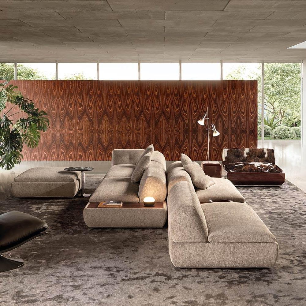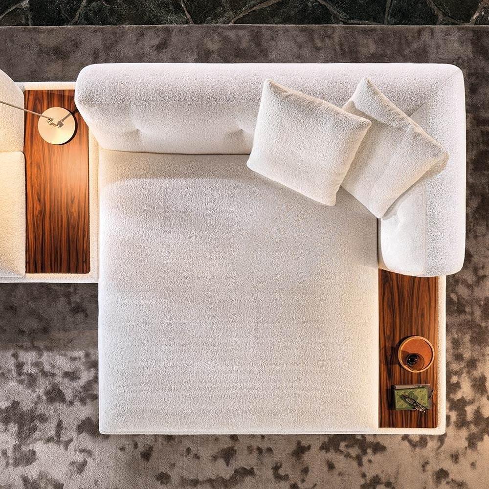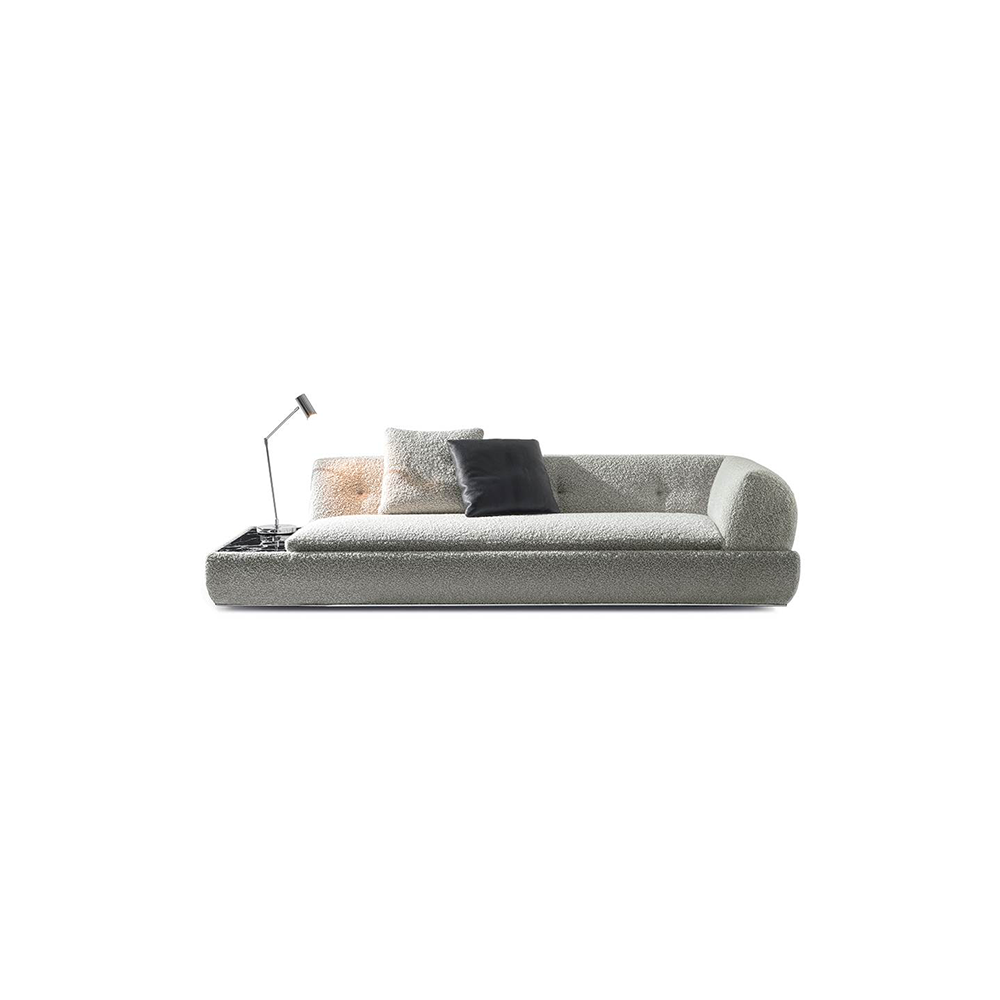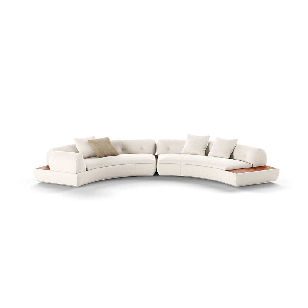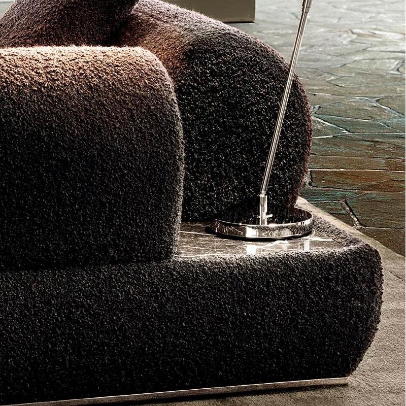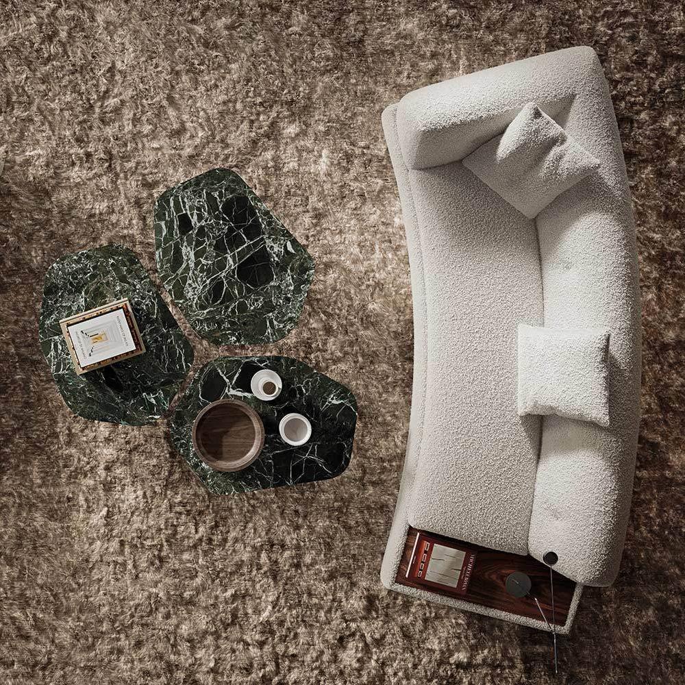This minimalist sofa combines the retro style of the 1970s with the inspiration of the moon phase. Its modular design allows it to stand alone as a scenery, and can also be combined to create infinite possibilities. The backrest and armrest resemble a crescent moon, paired with soft cushions and marble or wooden panels, elegantly hidden on a floating metal frame. At the junction of modules, the double-layer expansion bottom showcases individuality with geometric beauty.