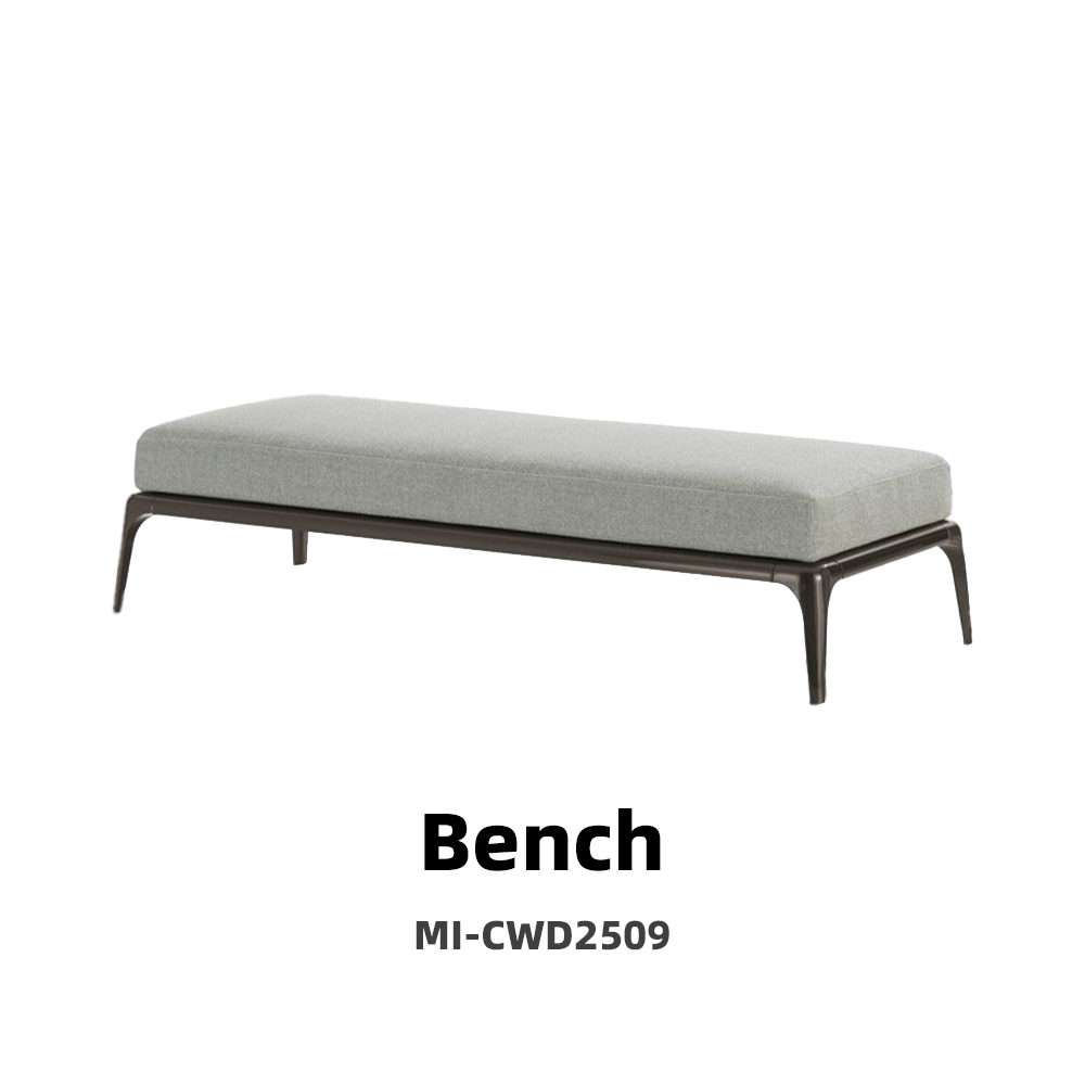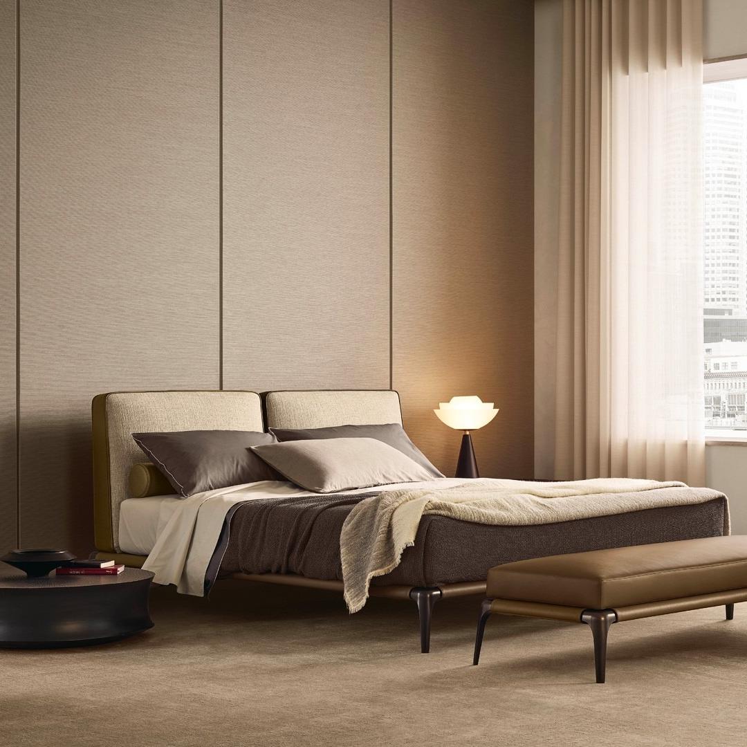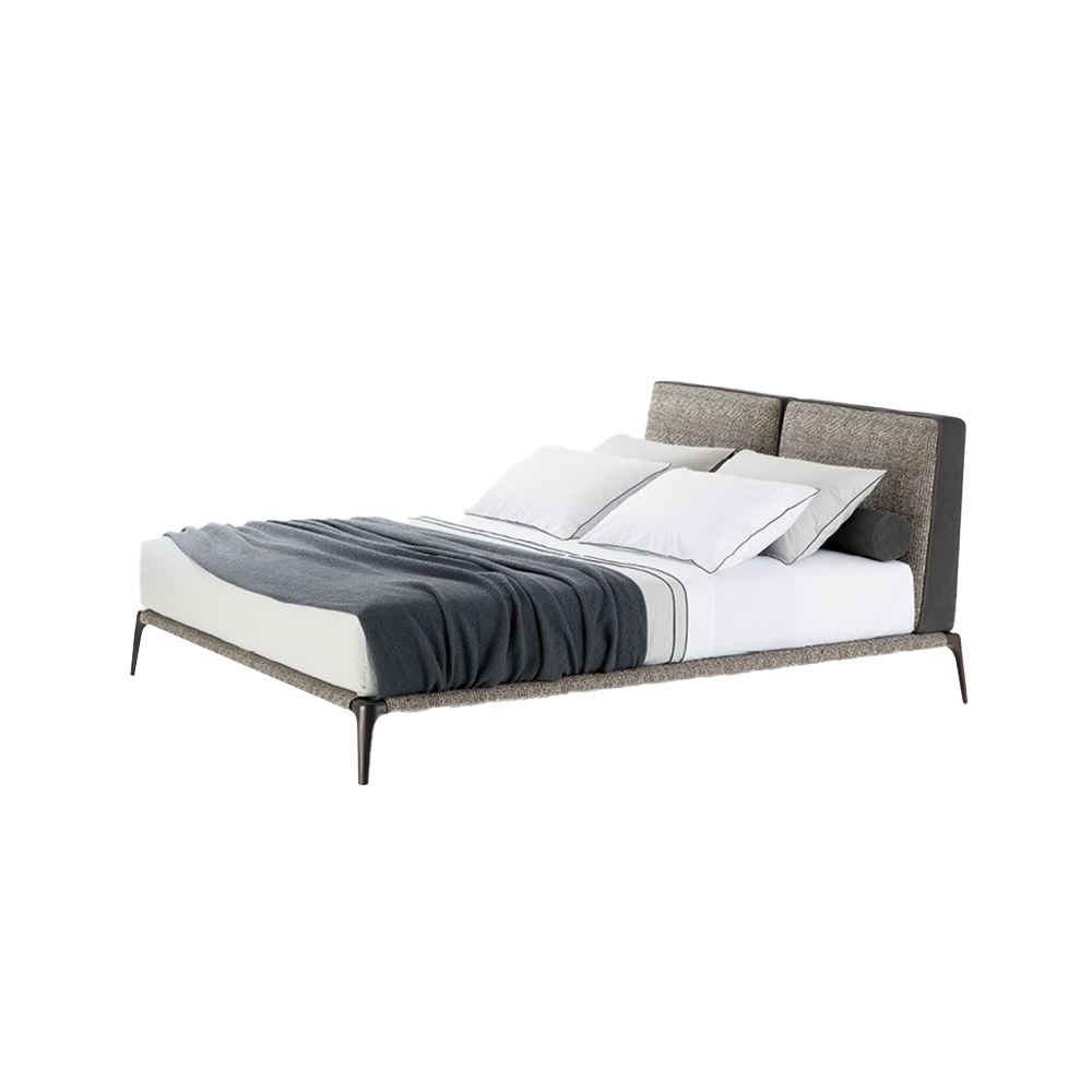 This bed is composed of two oversized cushions, each with a different covering material, and even the inner and outer materials of the headboard are not the same. The bed frame is made of painted metal material and can be paired with fabric or leather coverings. It is lightweight and always equipped with metal legs. Choosing a pair of rollers can make this bed more comfortable.