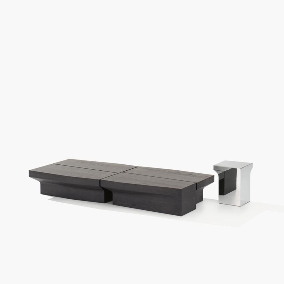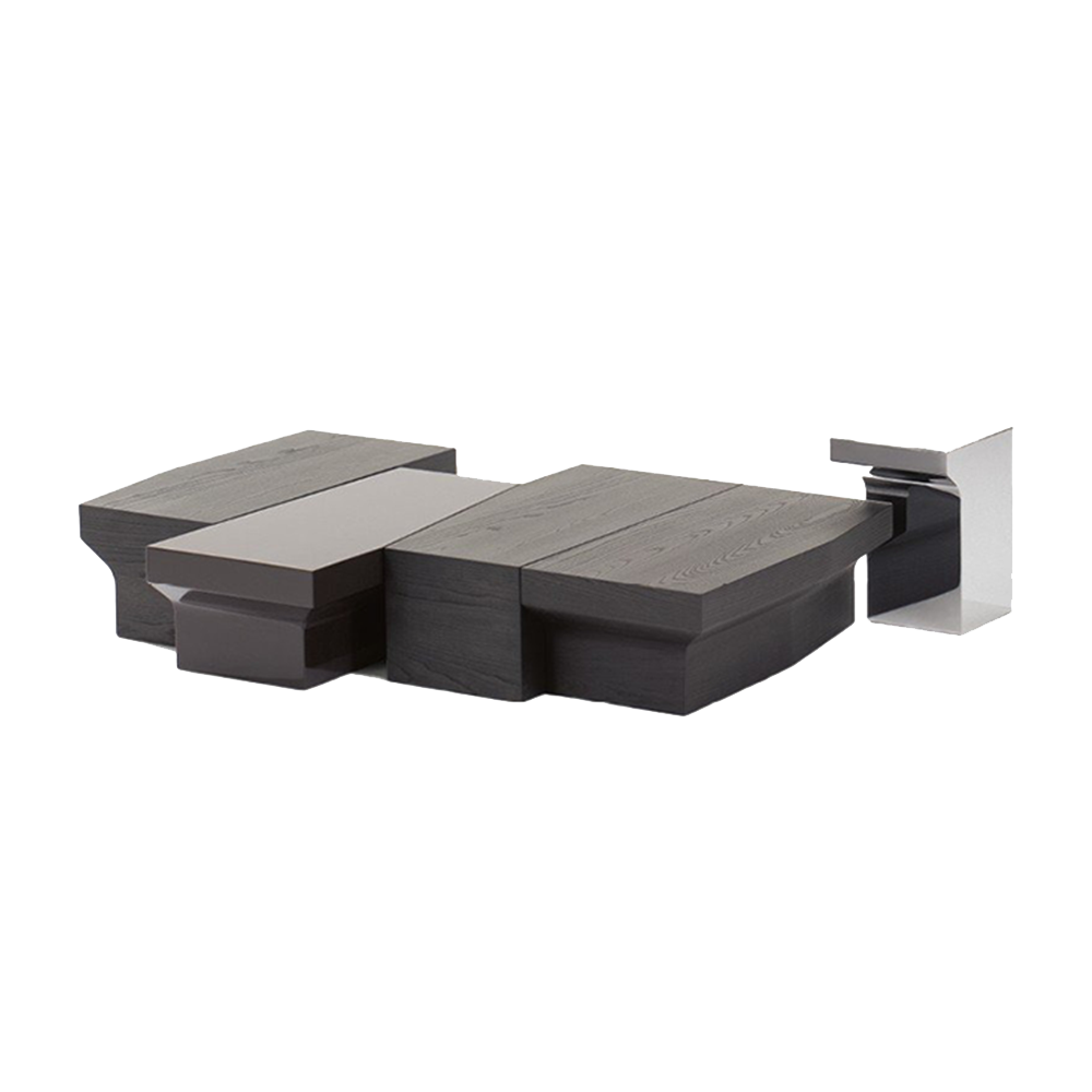 This coffee table interprets minimalist design as pure elegance. High quality materials such as steel, wood, and paint are selected to enrich the simple shapes of various sizes. The small tea table, as a sculptural item, is designed to perfect exquisite spaces and can be placed in the center of a room or next to a sofa.