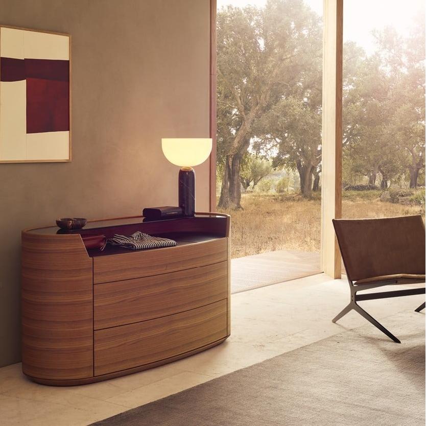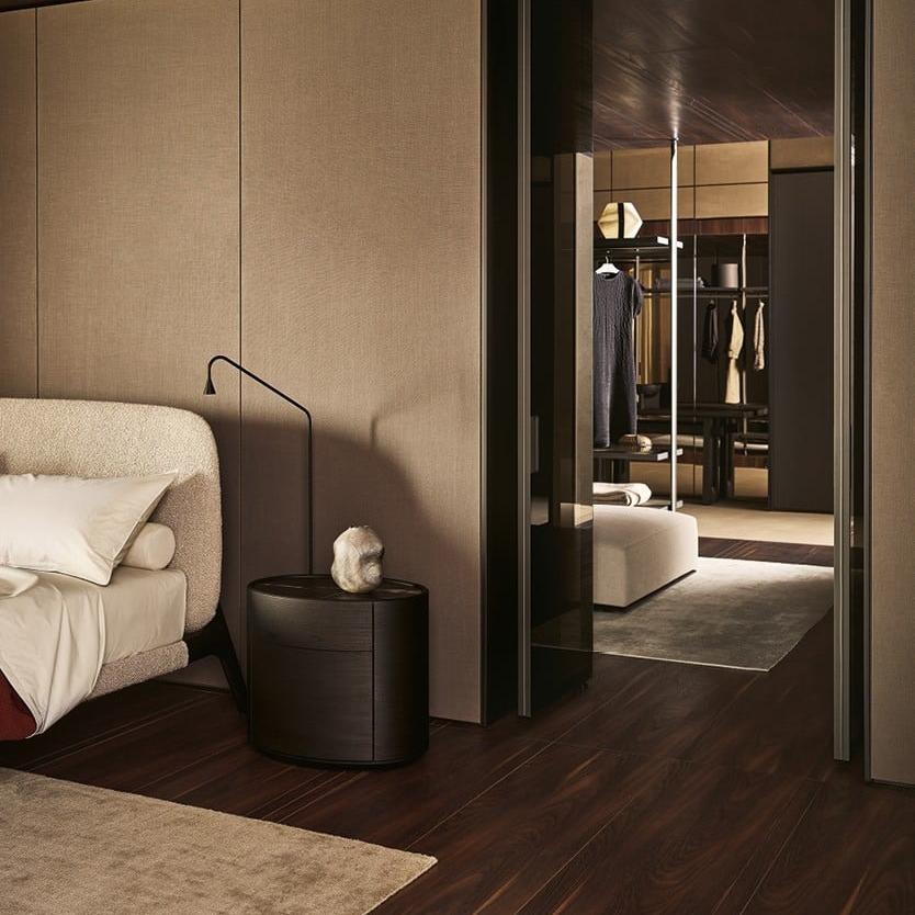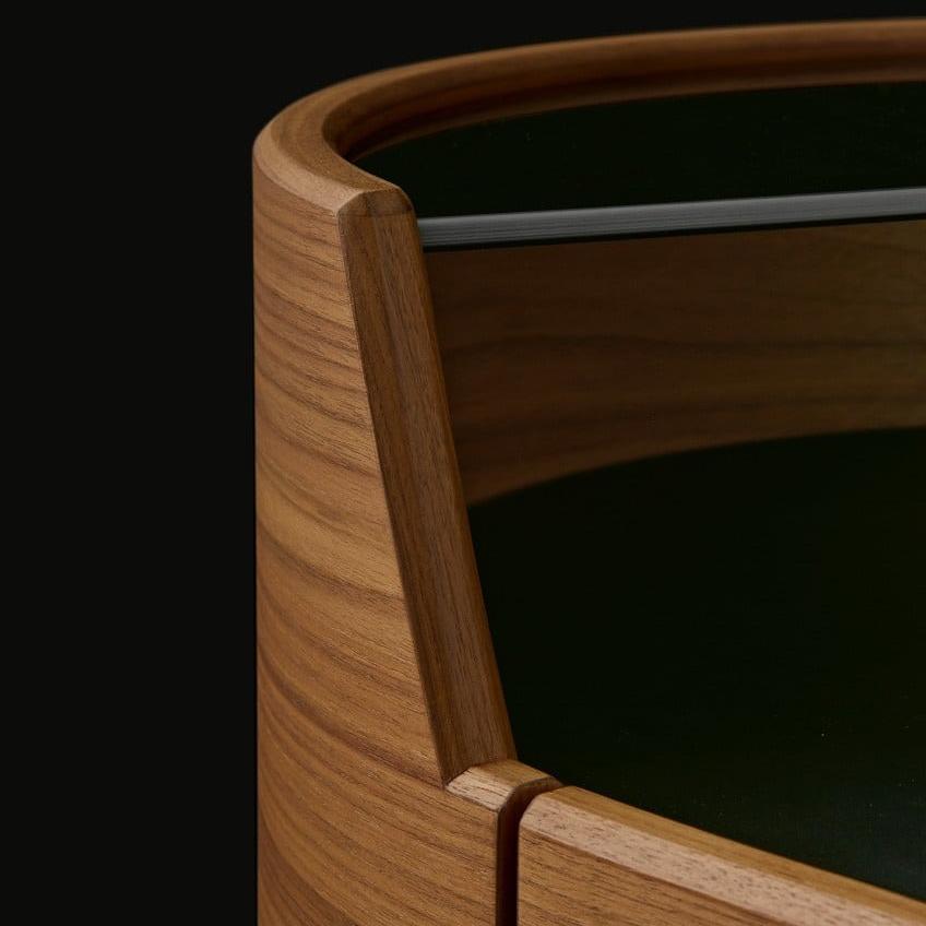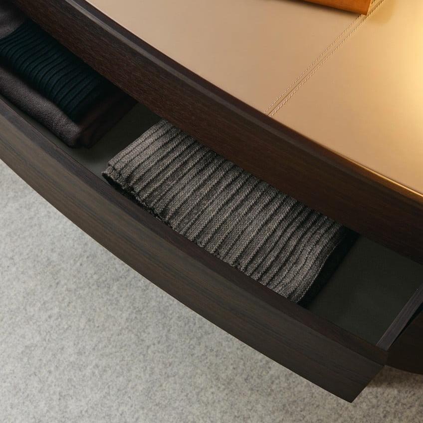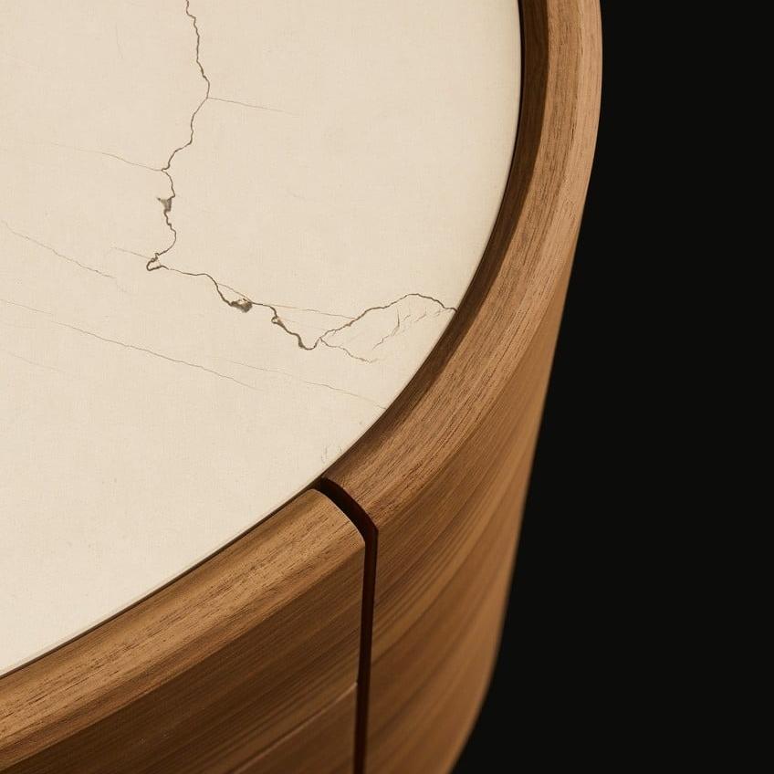 This bedside table drawer cabinet and bedside table have intricate and winding lines, with impeccable oval craftsmanship that can be paired with legs or placed directly on the ground. The drawer cabinet and bedside table also feature exquisite finishes, such as walnut gold wood frame and front, champagne colored metal legs, and zecevo marble top.