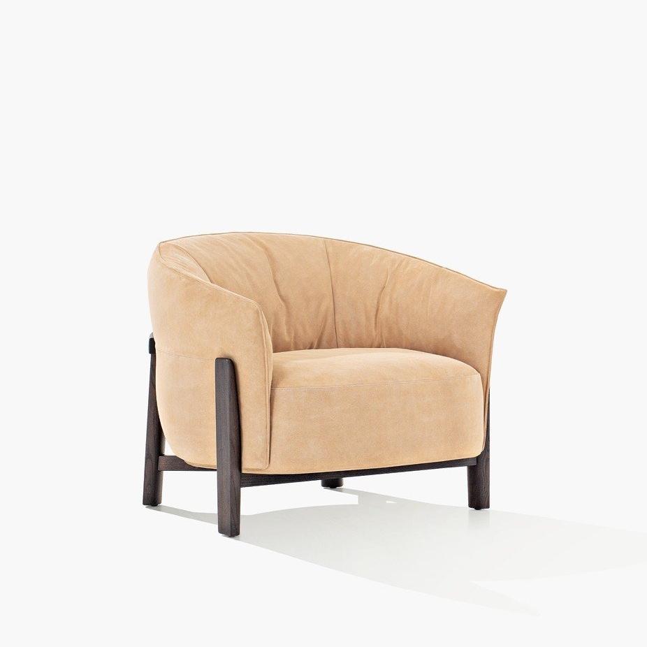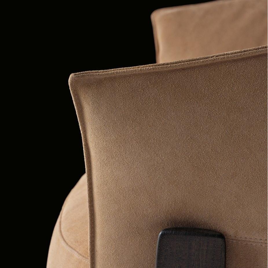 The unique feature of this leisure chair lies in its spacious wrap around seat cushion, which adopts a simple wooden structure to enhance the volume of the armchair, making it visually more lightweight. The armchair perfectly combines exquisite design, practical functionality, and timeless elegance.