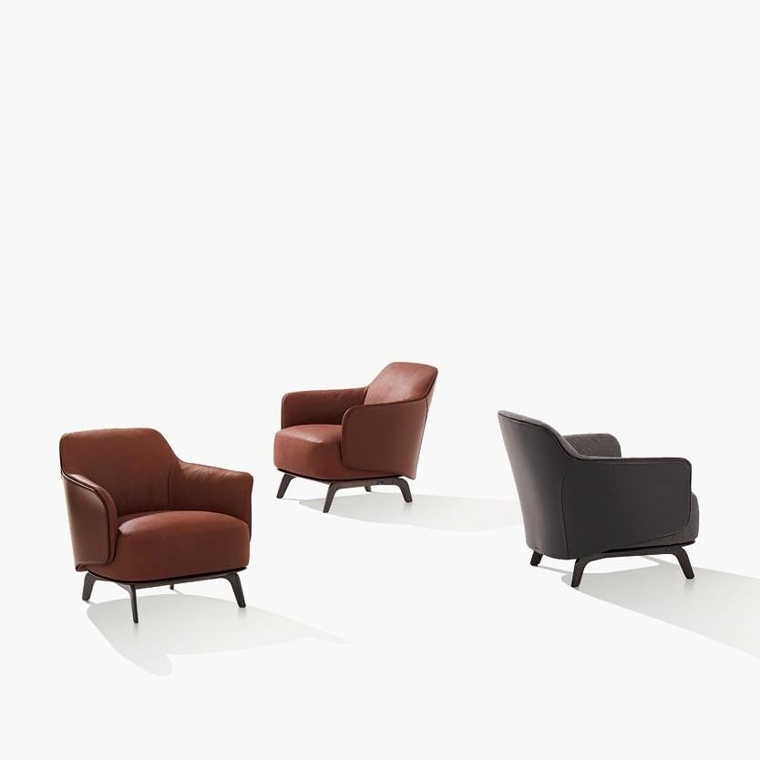 This armchair has elegant lines and a very delicate appearance, consisting of two perfectly combined shells: a leather outer wrap and an interior filled with soft padding and wrapped in fabric or leather. Strive for the best comfort of the chair surface that is visible.