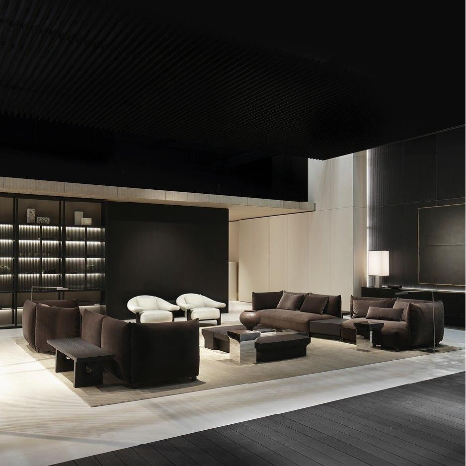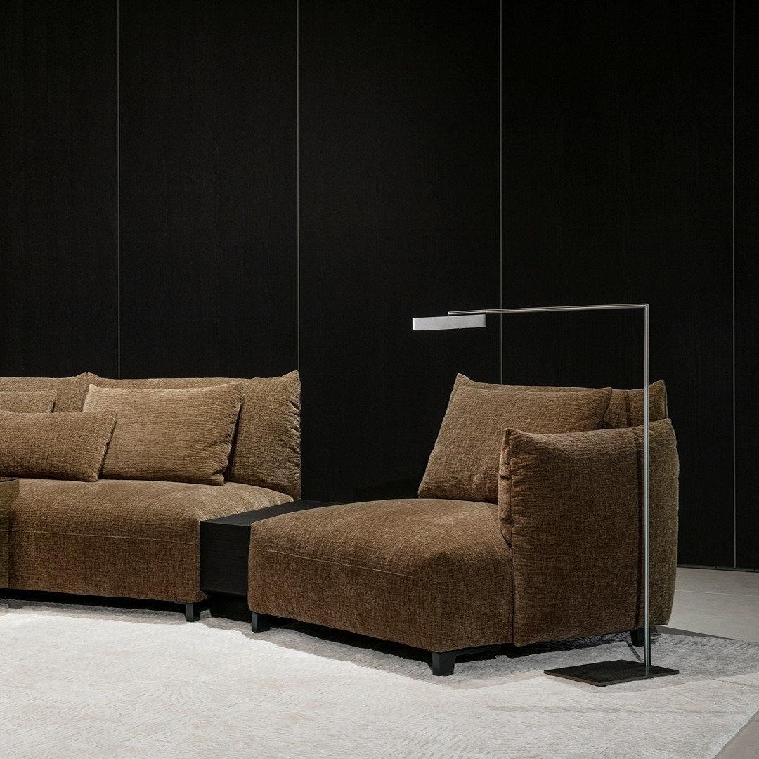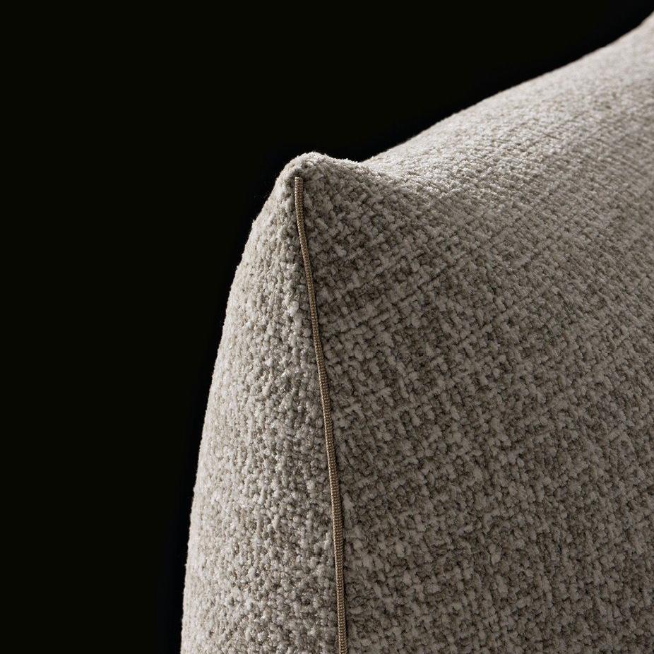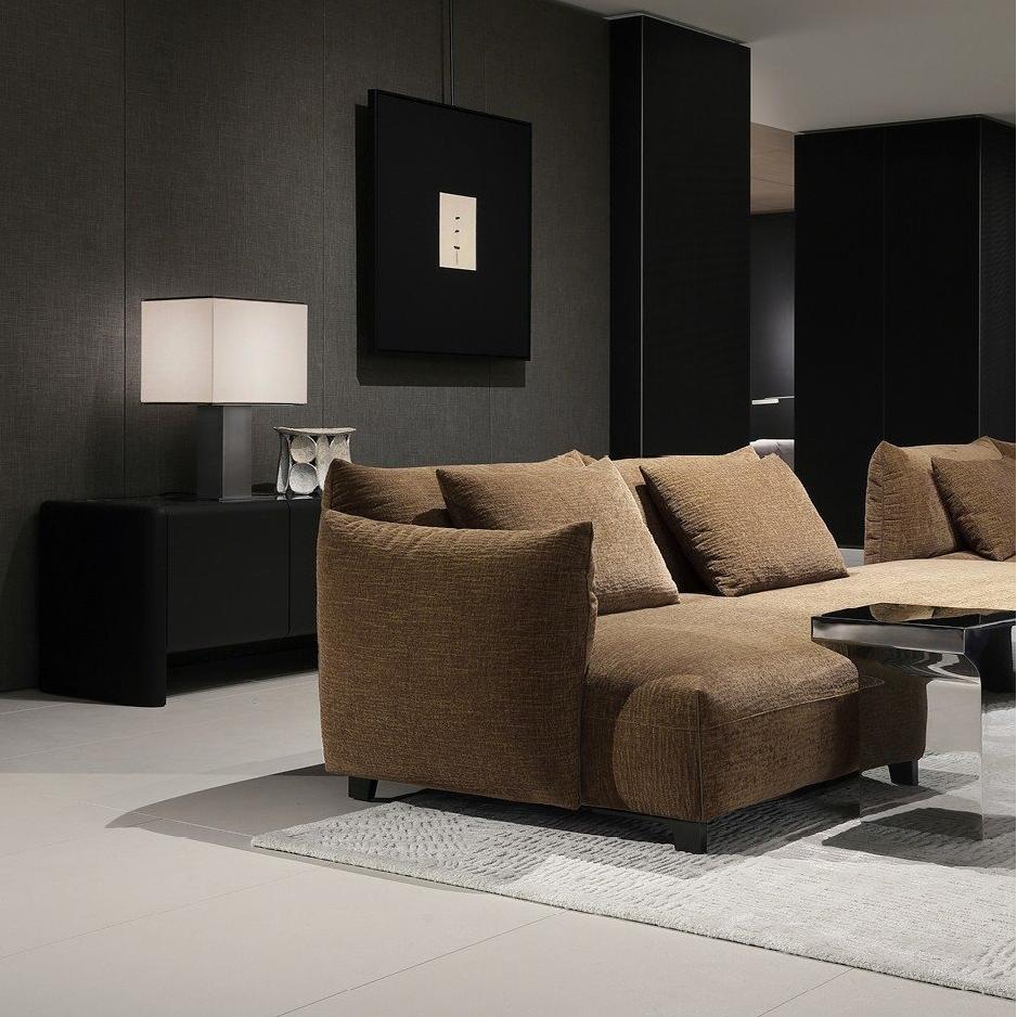 This sofa showcases a minimalist aesthetic. Its simple lines complement the large volume, and the design inspiration comes from the fashion industry, presenting perfect proportions and exquisite details. The sofa offers the option of same color or contrasting rolled edges, and personalized configuration is achieved through circular or linear modular components.
