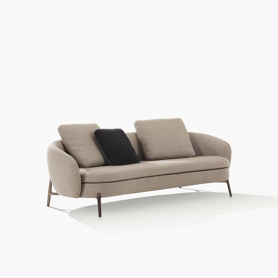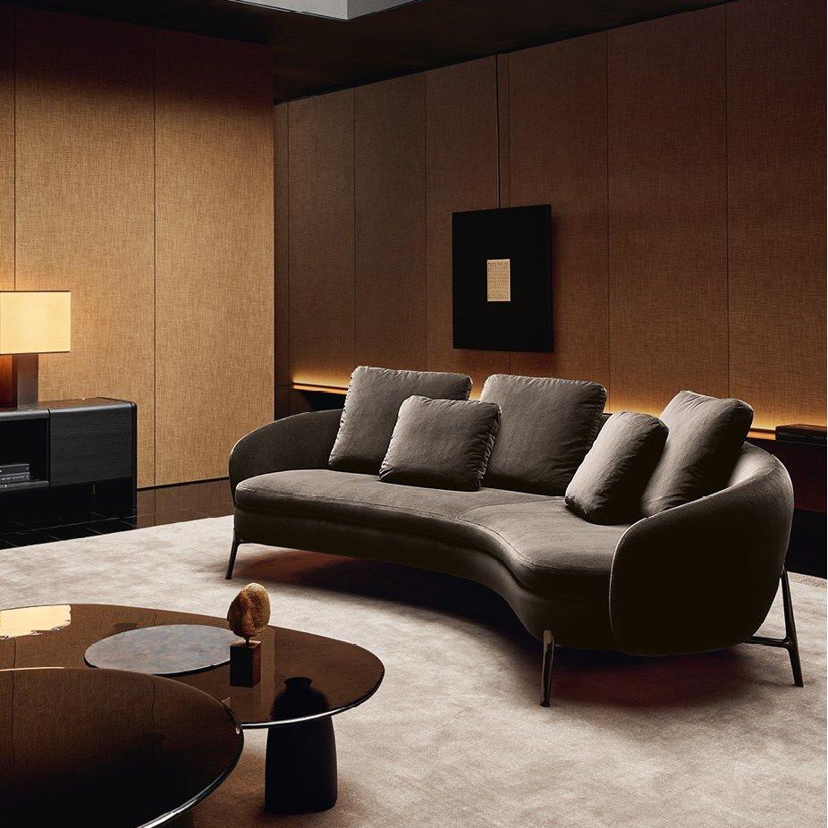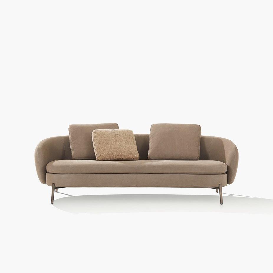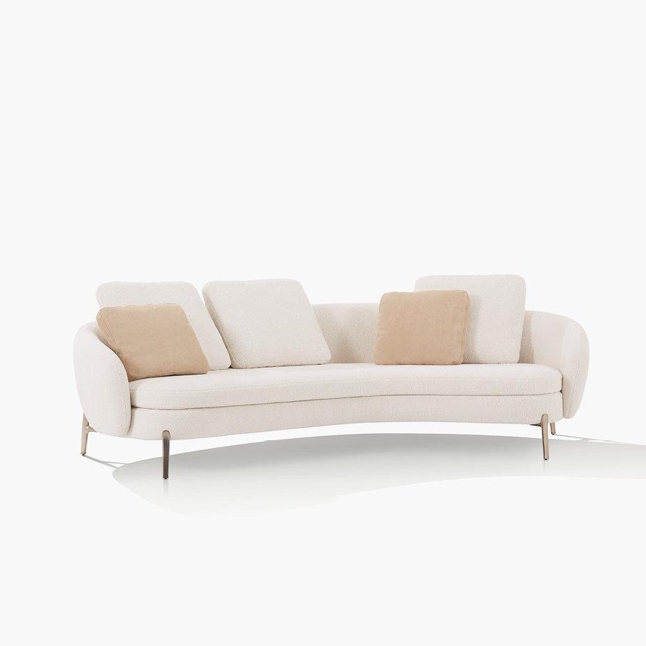 This sofa creates an intimate and warm atmosphere for the living room with its curves and soft appearance. Its iconic wrap around backrest combines fashionable design with contemporary craftsmanship, and the seats are equipped with slender legs inspired by jewelry, which not only enhances comfort but also promotes interpersonal communication.