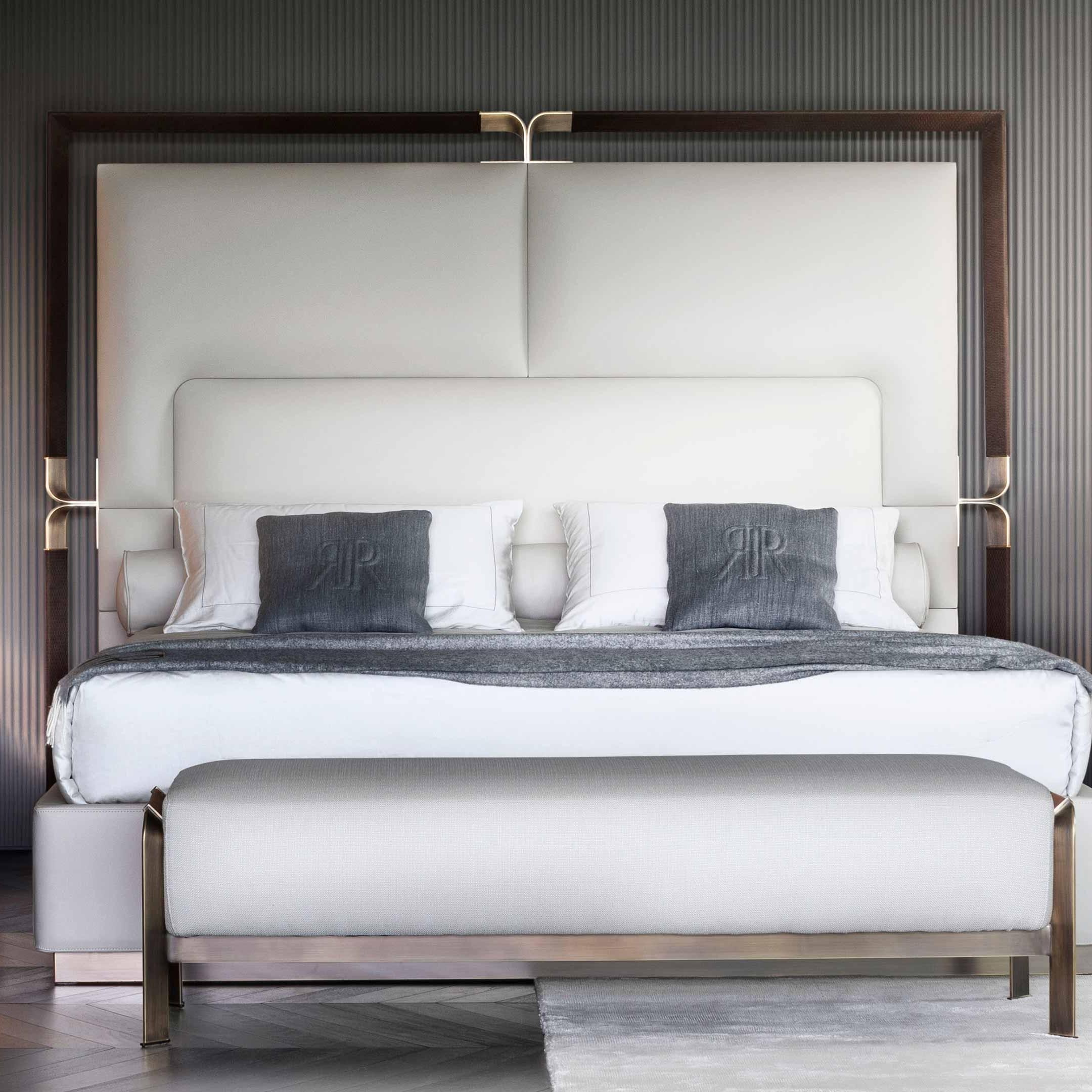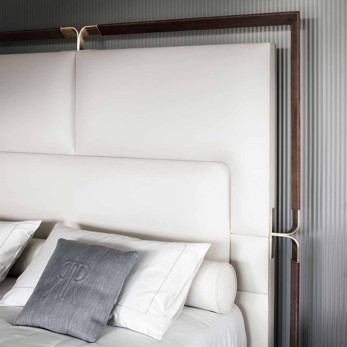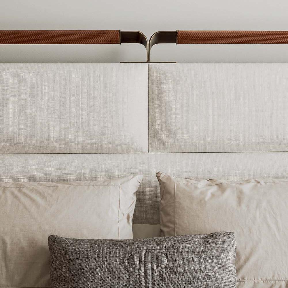 This light luxury modern style bed is paired with neutral tones and dark wooden frames to create a luxurious and elegant bedroom atmosphere. The spacious headboard serves both supporting and decorative functions, with bedside tables and exquisite table lamps on both sides, making nighttime rest more comfortable and warm.