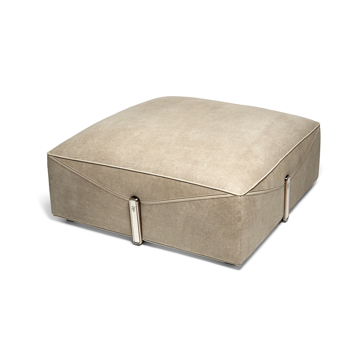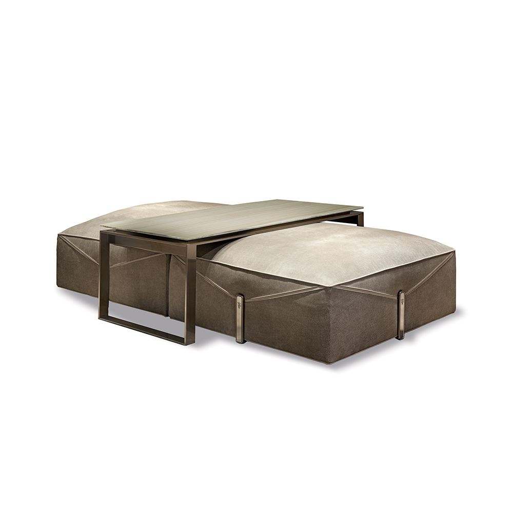 Low table with a satin-finished stainless steel tubular frame and a slim marble top. The essential profile and precise finishes define a rigorous and sophisticated aesthetic. Metal components are offered in the collection’s satin finishes.