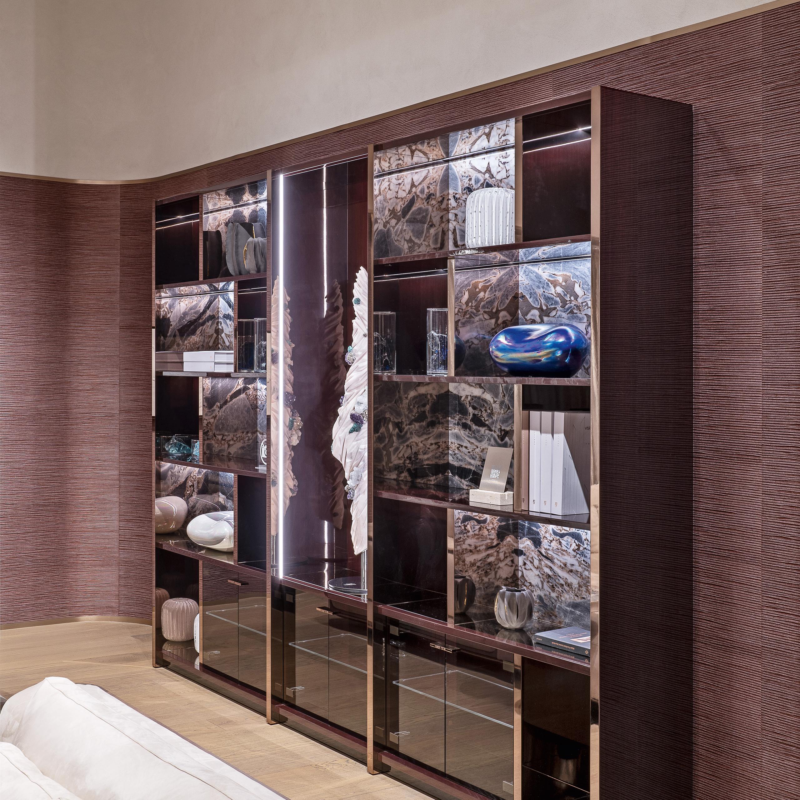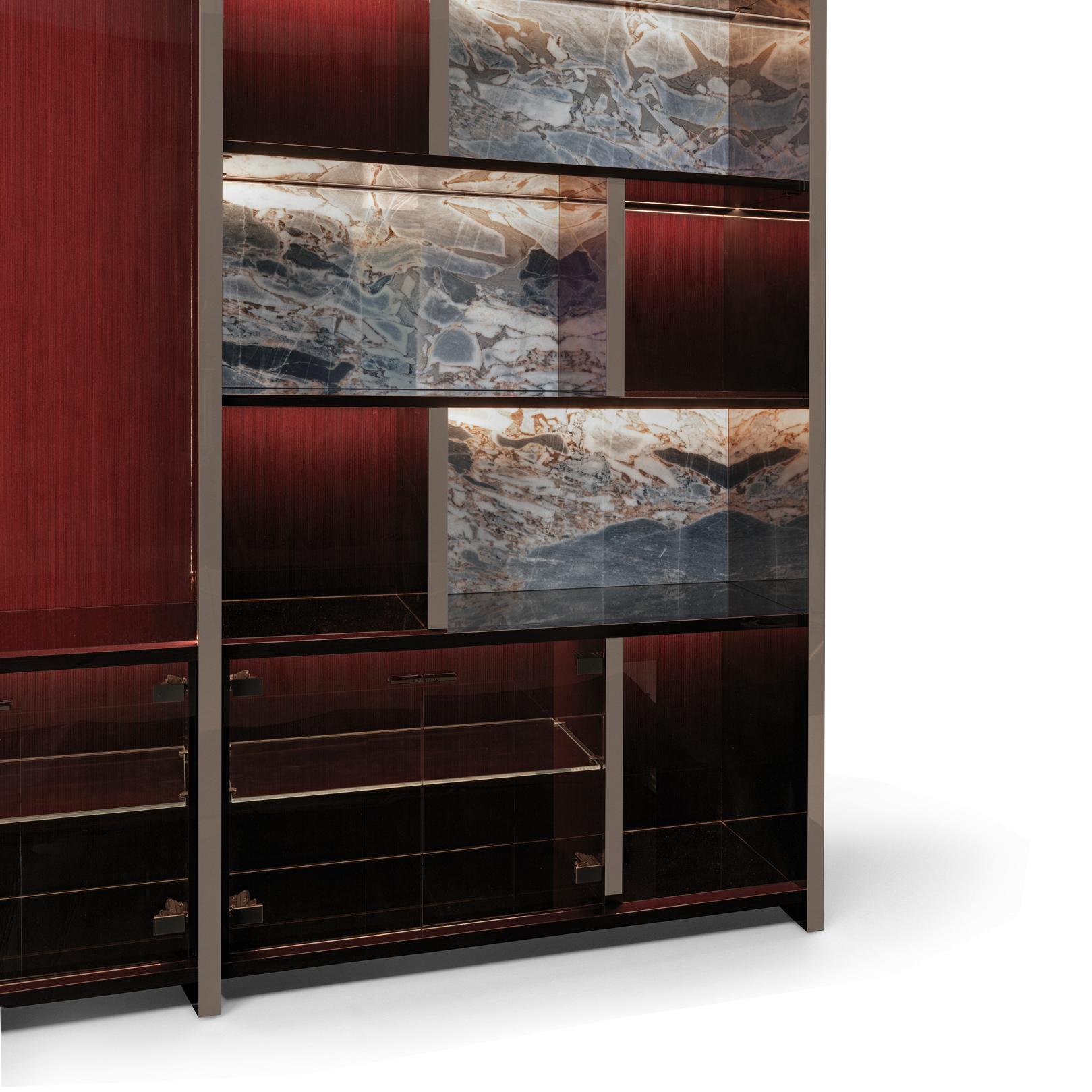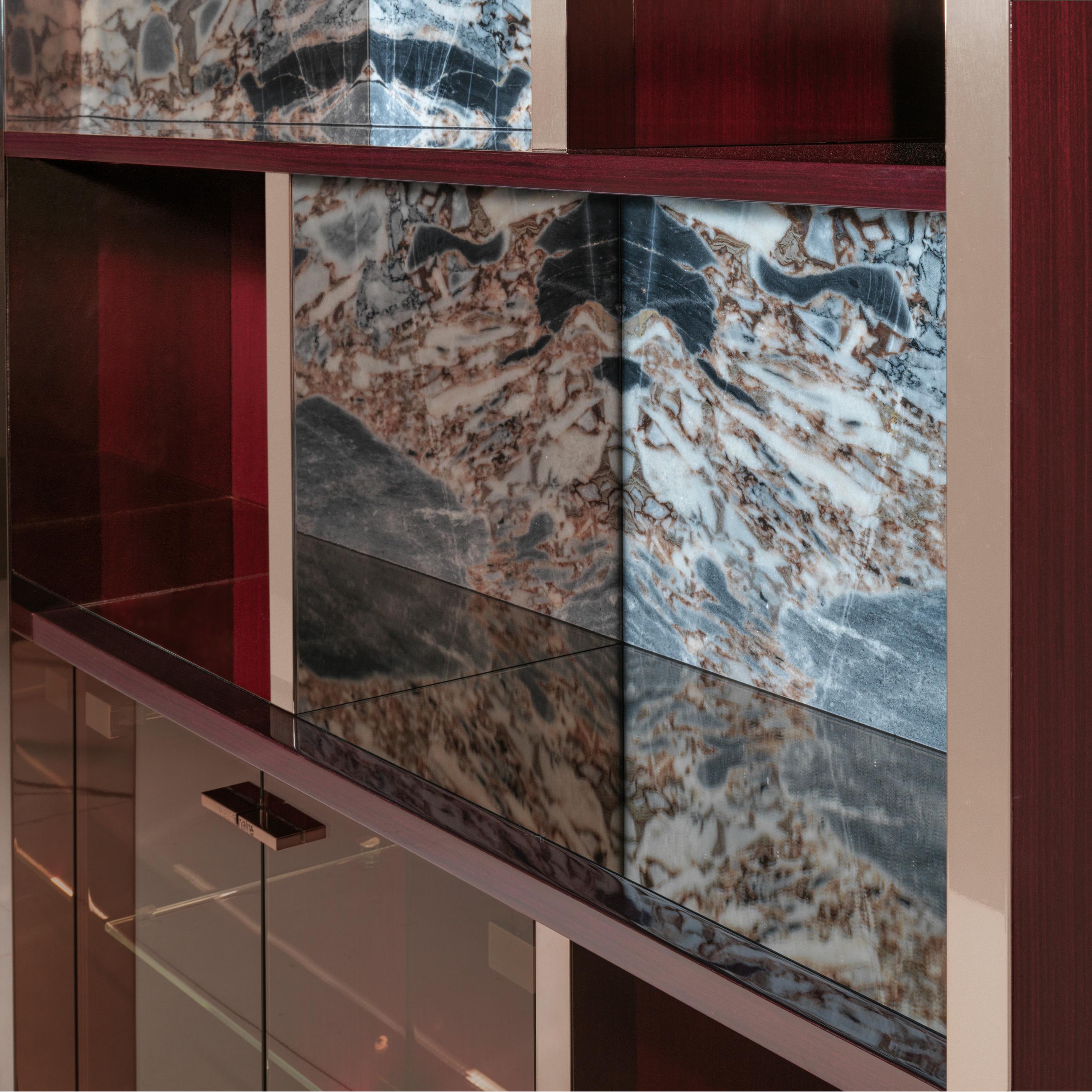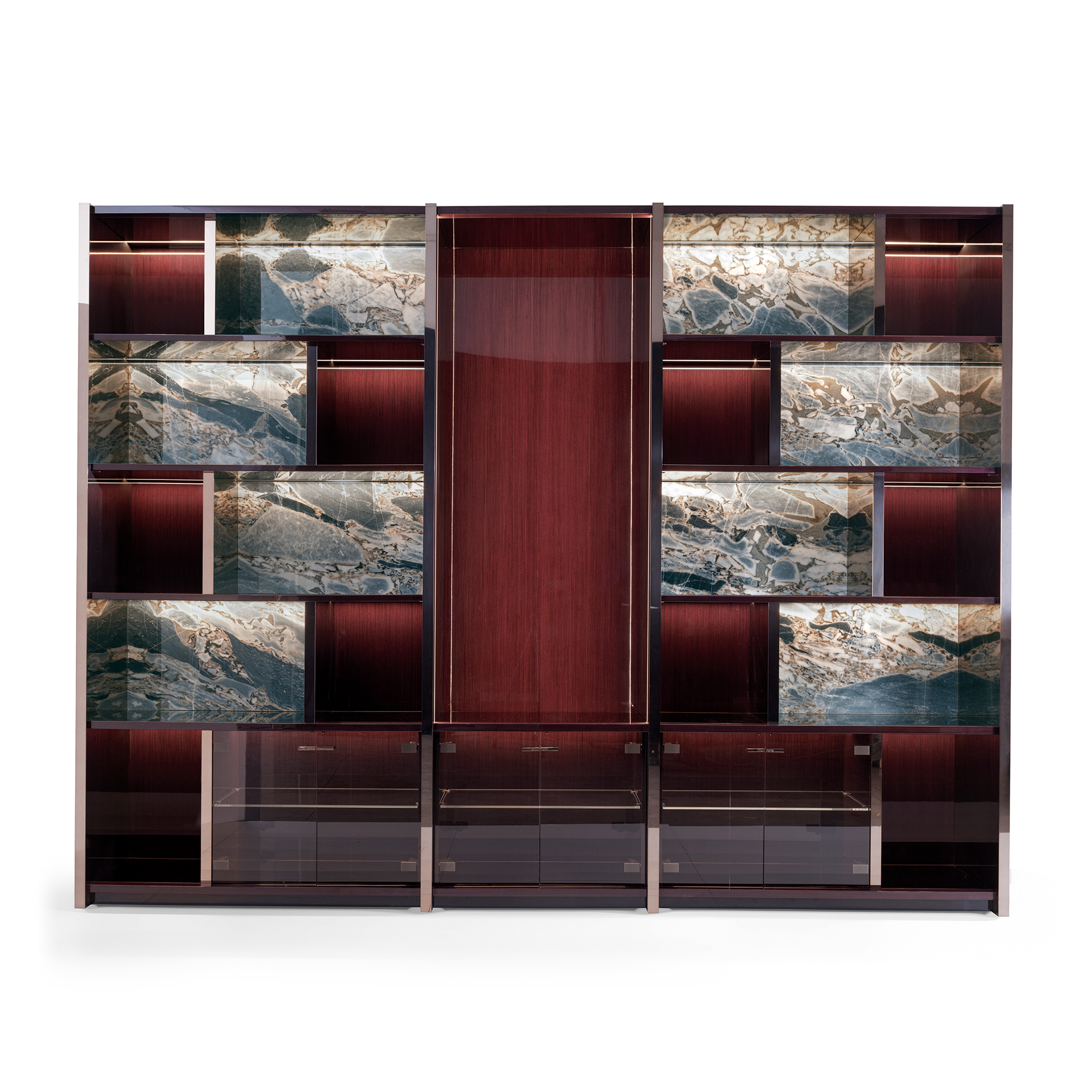 This modern minimalist combination wooden office furniture cleverly blends marble texture with dark wood, showcasing luxury in a low-key manner. Modular design, perfect combination of open display shelves and enclosed storage cabinets, combining practicality and aesthetics. Whether it's the living room, study, or office, it can easily blend in.