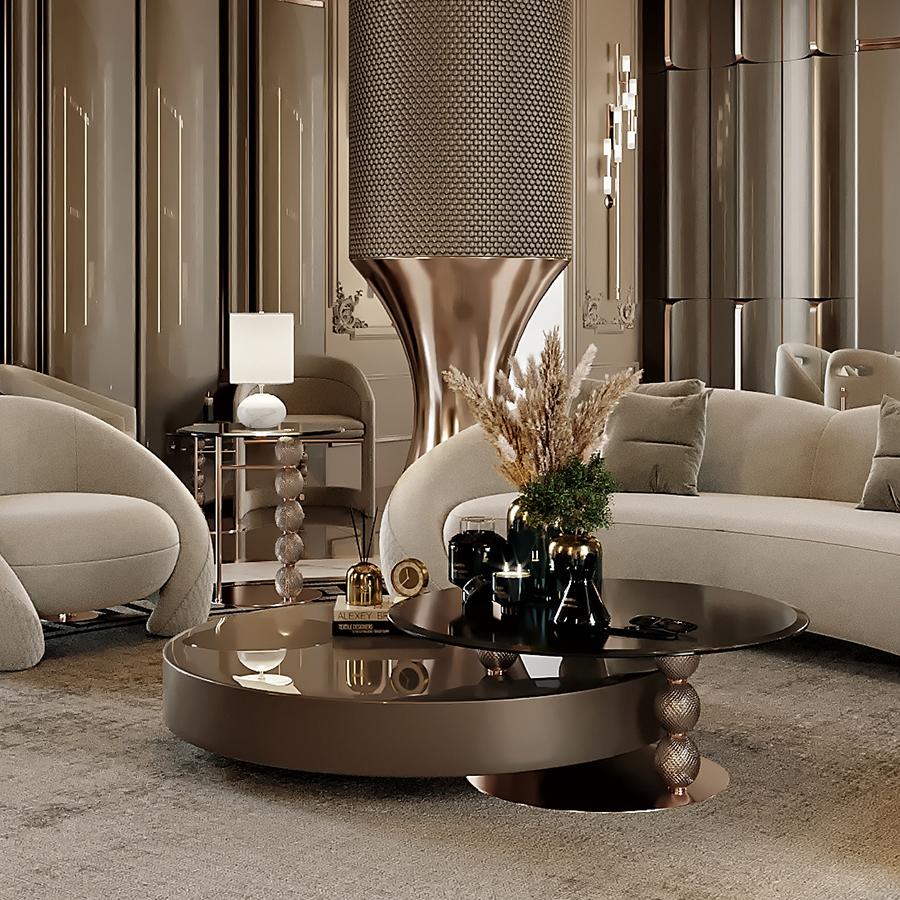 This circular coffee table injects artistic atmosphere into the home with modern high gloss materials and unique table leg design. Round lines break tradition and make the space dynamic and free. The surface is smooth and easy to clean, suitable for decoration and snacks, and easily creates an ideal atmosphere.
