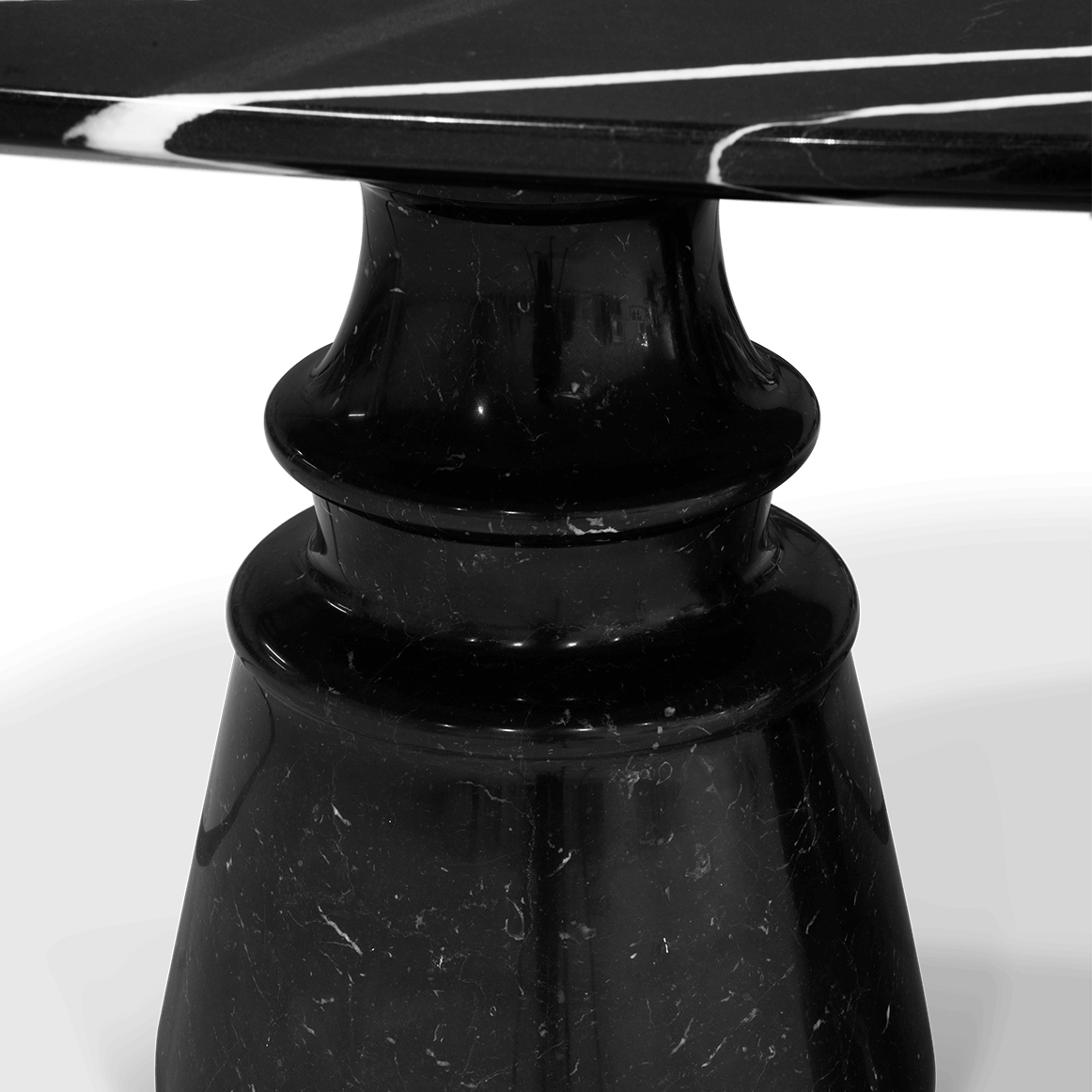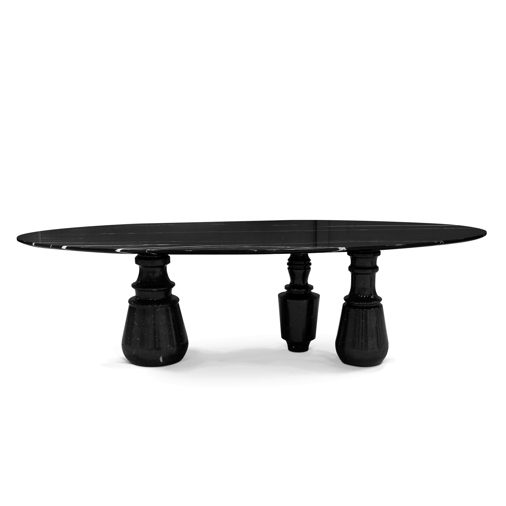 This Italian style luxury solid wood dining table perfectly blends minimalism with luxurious texture. Smooth oval natural marble tabletop with natural and beautiful texture, showcasing the beauty of nature. Paired with modern marble legs, the overall design is simple and elegant, bringing a touch of elegance to the restaurant.