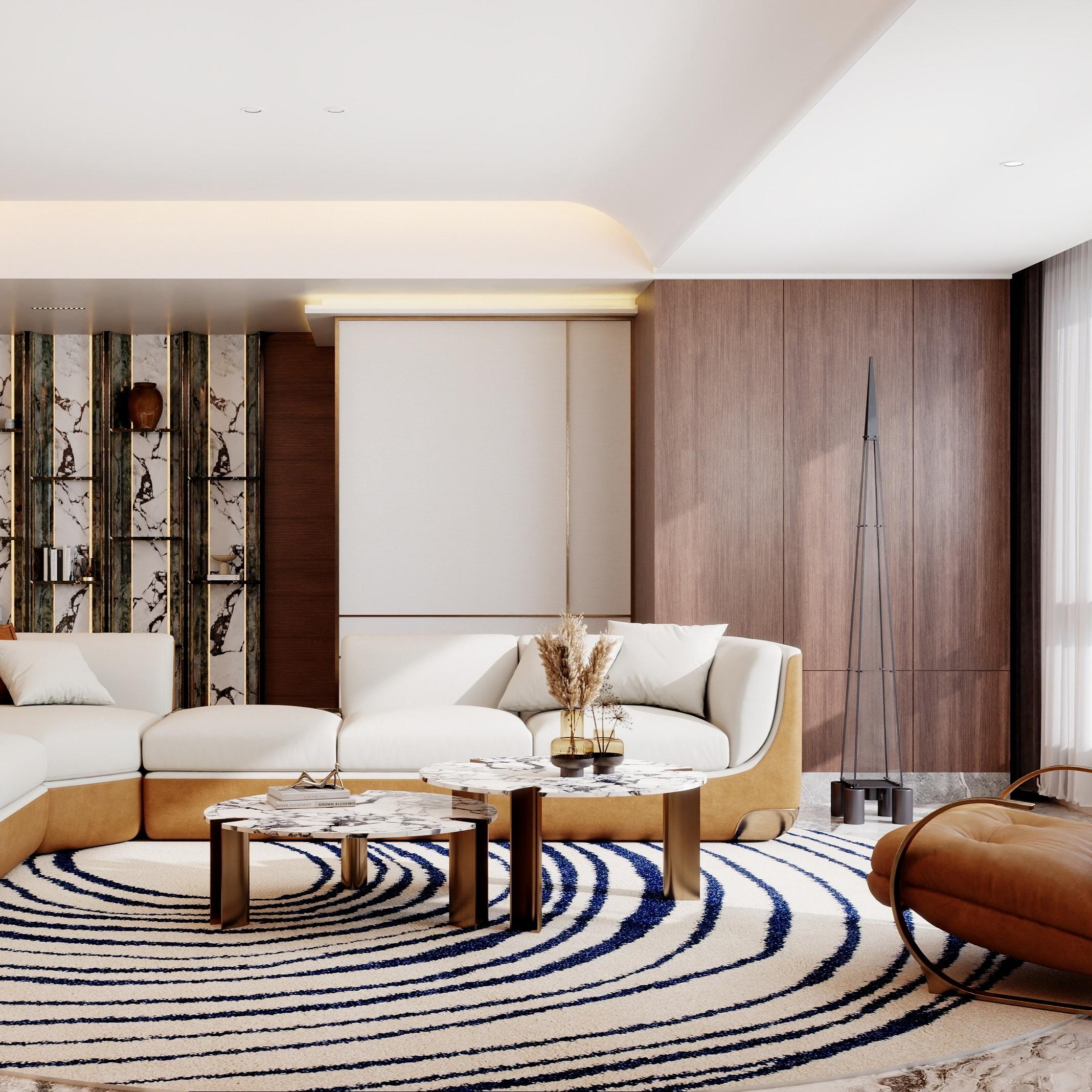 This case takes modern light luxury as its keynote, integrating rational structure with delicate beauty to present an exquisite and comfortable overall living experience. The space is mainly in warm grey and off-white tones. Through the collision of champagne gold metal lines, dark brown wood veneer and natural marble, a rich and harmonious visual hierarchy is outlined. The materials such as fabric-textured wall panels, velvet and matte leather complement each other in texture and exude understated luxury in the details. The entire house discards redundant decorations and relies on material contrast and simple shapes to create a quality residence that combines modernity and warmth.